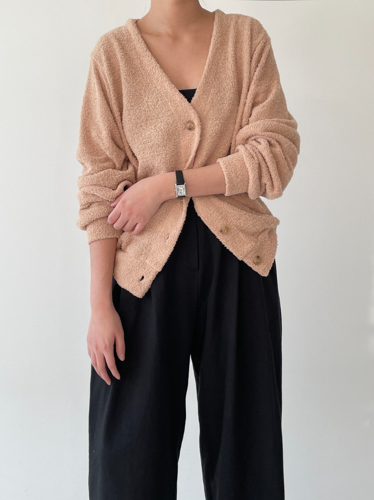 品名:솔잎브이가디건 ◎※☞颜色:검정, 베이지, 크림 ◎※☞尺寸:FREE ◎※☞材质:폴리 95%,스판 5% 翻译