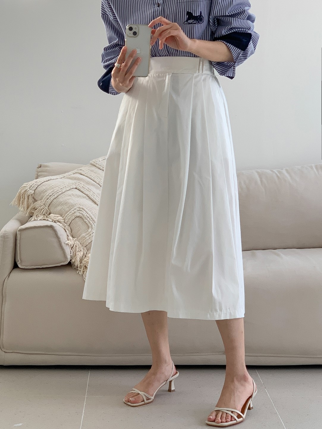 品名:23년 SS 봄신상#) 코튼 쓰리핀턱 미디스커트 ◎※☞颜色:블랙, 아이보리 ◎※☞尺寸:FREE ◎※☞材质:纯棉 100% ◎※☞注意事项:只能干洗,只能手洗,不能手洗,机洗,不能使用漂白剂,不能烘干,不能熨烫,不能曲折
