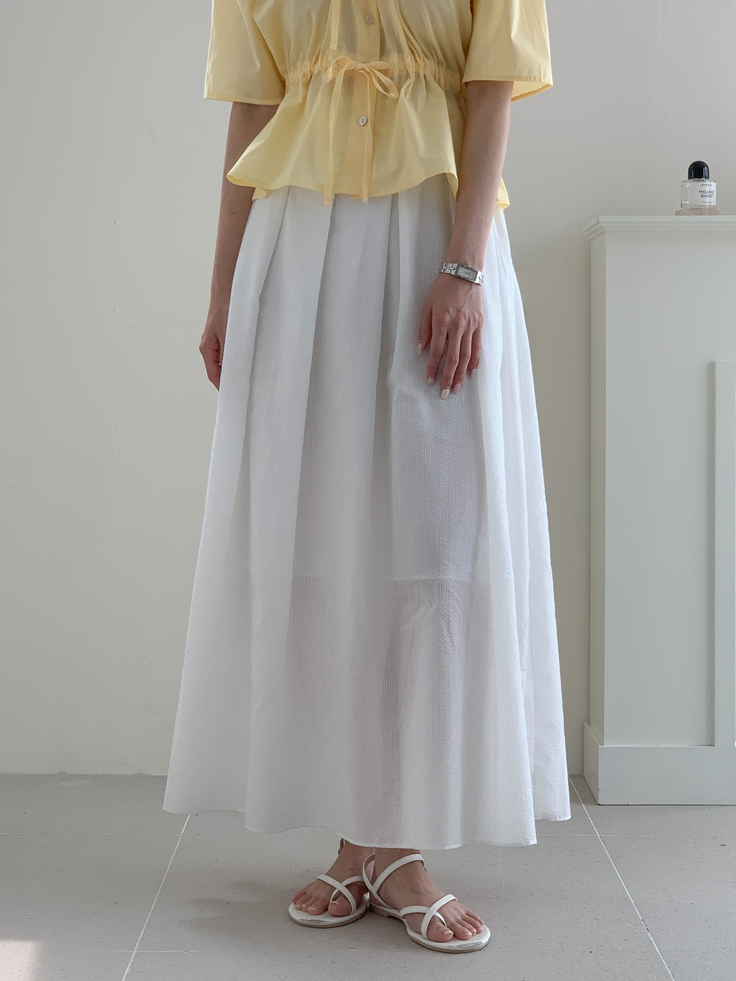 品名:简约百搭褶皱A字长裙 ◎※☞颜色:소라, 화이트 ◎※☞尺寸:FREE ◎※☞材质:纯棉 100% ◎※☞注意事项:只能干洗,只能手洗,不能手洗,机洗,不能使用漂白剂,不能烘干,不能熨烫,不能曲折 翻译