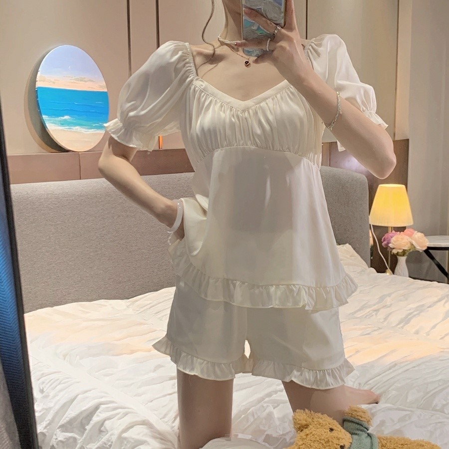 品名:크라운잠옷세트(파자마 홈웨어) ◎※☞颜色:핑크, 화이트 ◎※☞尺寸:FREE ◎※☞材质:聚酯 100% 翻译