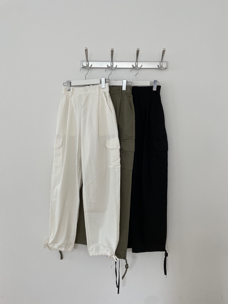 品名:그루트 카고 스트링 PT ◎※☞颜色:블랙, 아이보리, 카키 ◎※☞尺寸:FREE ◎※☞材质:纯棉 100% 翻译
