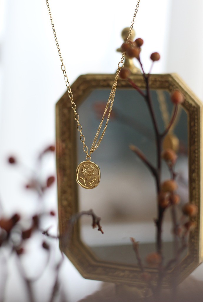 品名:TN176 티타늄엔틱로즈목걸이 ◎※☞颜色:골드 ◎※☞尺寸:펜던트 1.6X1.4CM, 체인 길이 42+6CM ◎※☞材质:티타늄 100% 翻译
