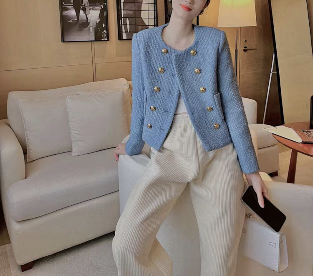 品名:1830 아다미스 샤넬 트위드 쟈켓 ◎※☞颜色:라이트블루, 라이트옐로우, 블랙, 화이트 ◎※☞尺寸:FREE ◎※☞材质:纯棉 100% 翻译