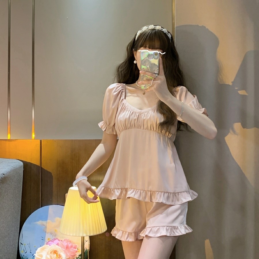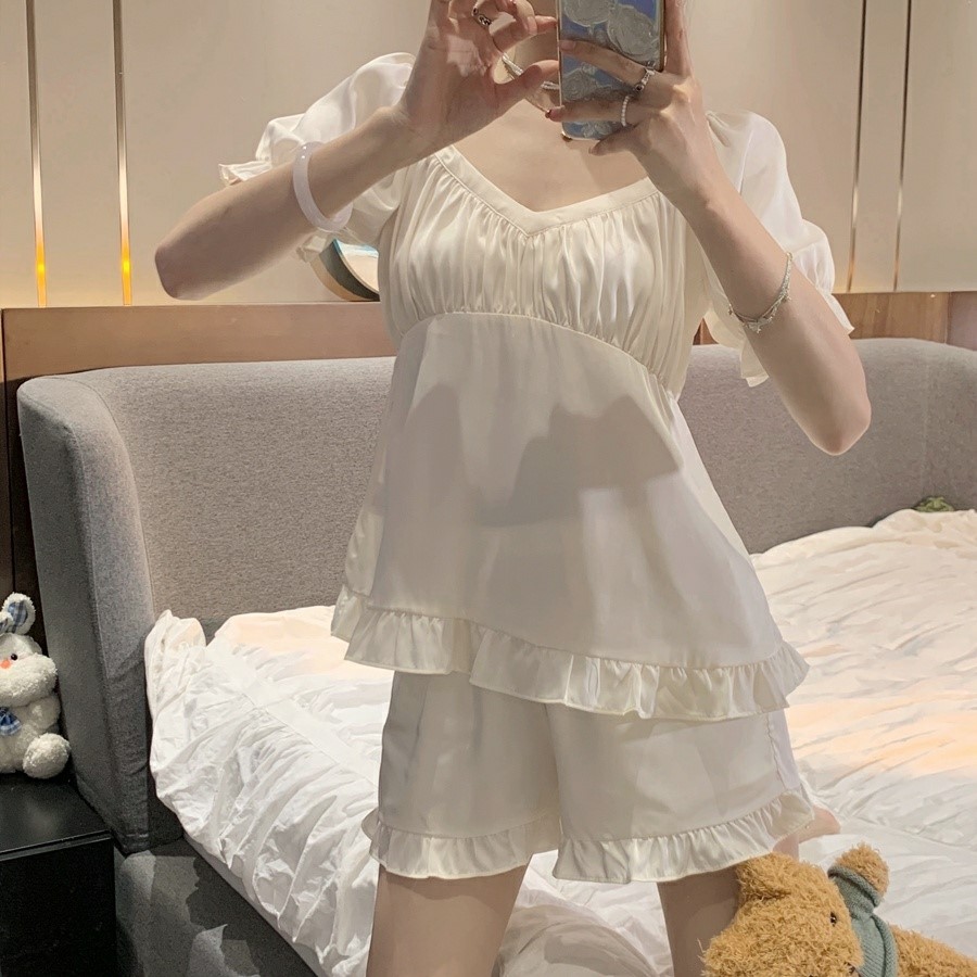 品名:크라운잠옷세트(파자마 홈웨어) ◎※☞颜色:핑크, 화이트 ◎※☞尺寸:FREE ◎※☞材质:聚酯 100% 翻译