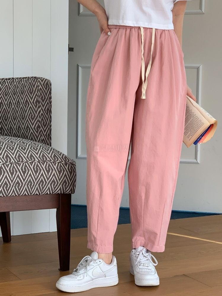 品名:보일배기팬츠(밴딩 캐주얼 배기팬츠) ◎※☞颜色:베이지, 아이보리, 카키, 핑크 ◎※☞尺寸:FREE ◎※☞材质:기타 100% 翻译