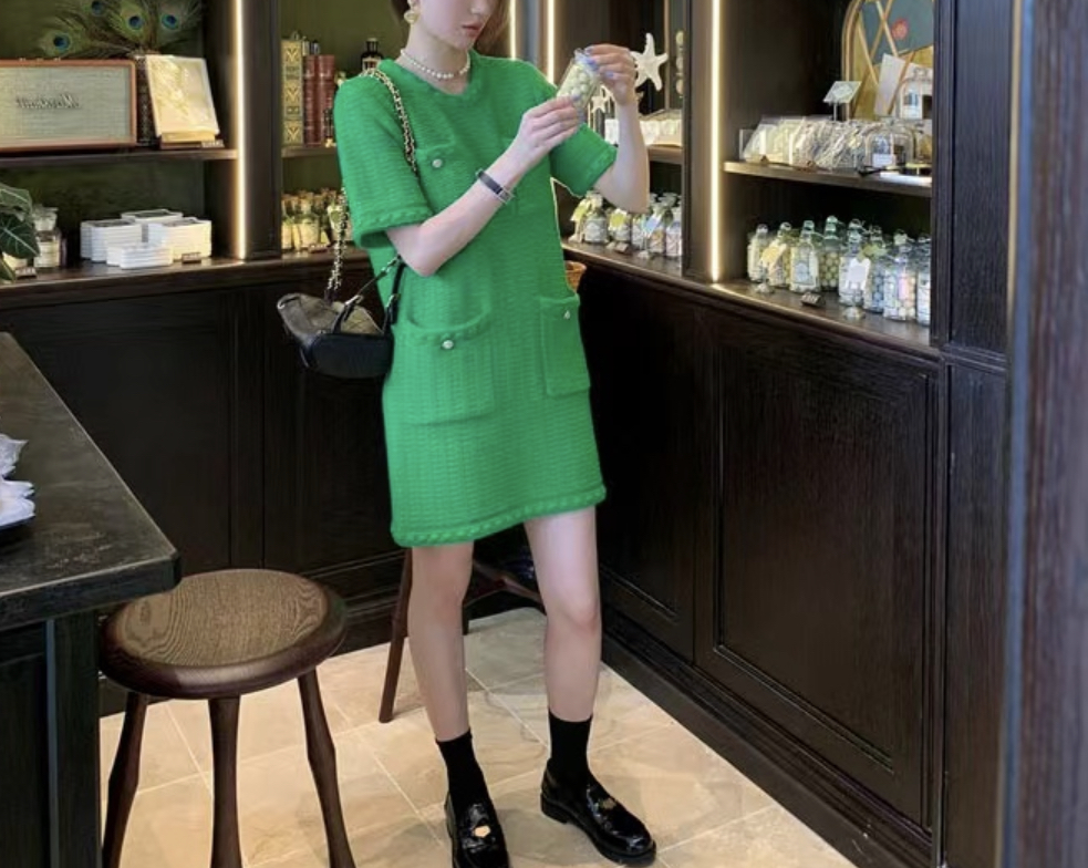 品名:961 제니 샤넬 트위드 미니 원피스 ◎※☞颜色:그린, 핑크, 화이트 ◎※☞尺寸:FREE ◎※☞材质:纯棉 100% 翻译