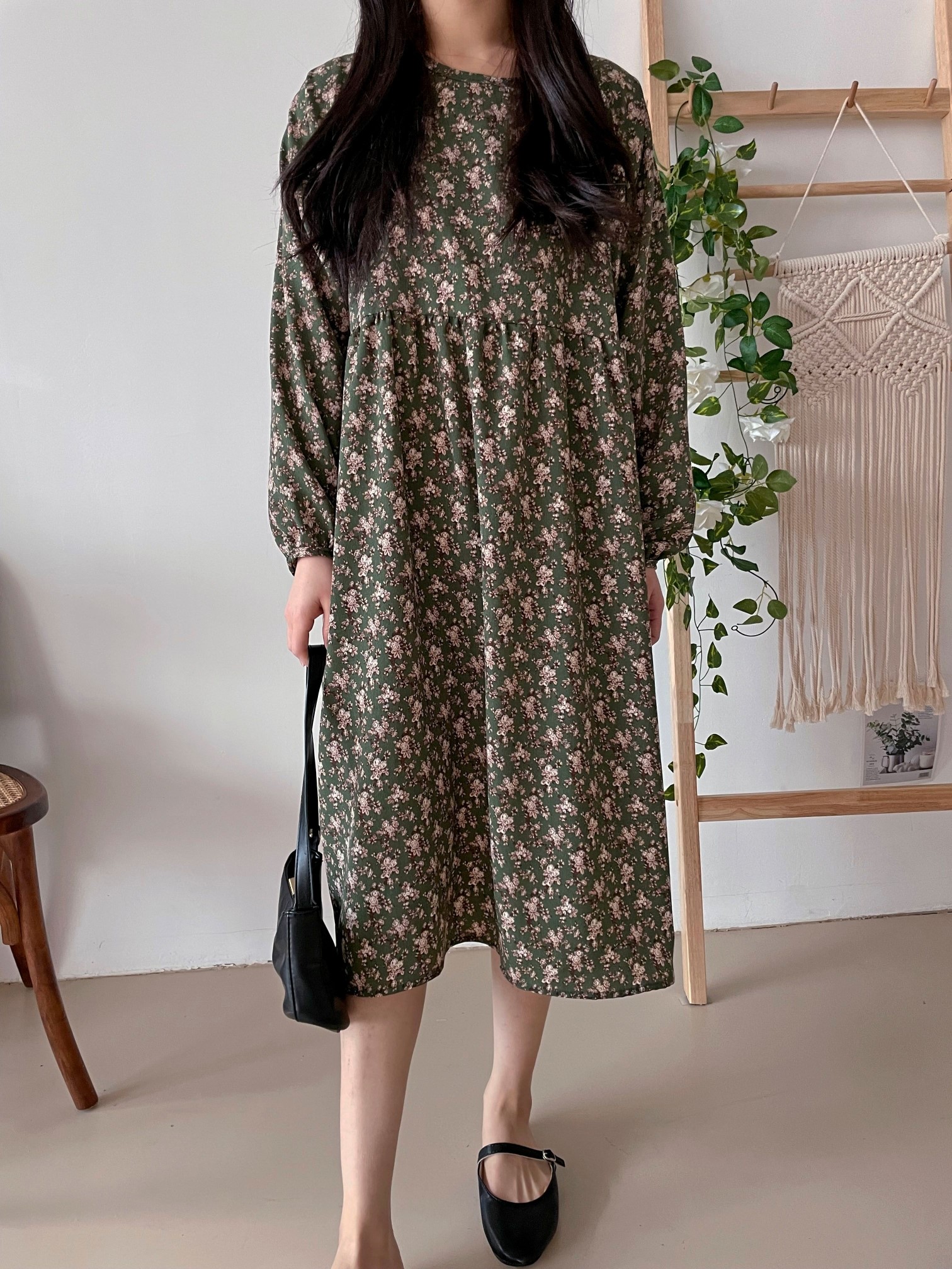 品名:碎花印花可爱褶皱长袖连衣裙 ◎※☞颜色:블랙, 연베이지, 카키 ◎※☞尺寸:FREE ◎※☞材质:聚酯 100% ◎※☞注意事项:只能干洗,只能手洗,不能手洗,机洗,不能使用漂白剂,不能烘干,不能熨烫,不能曲折