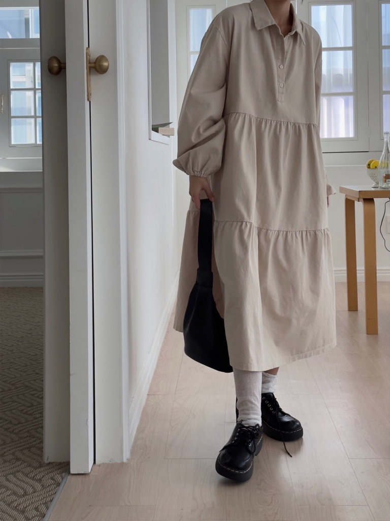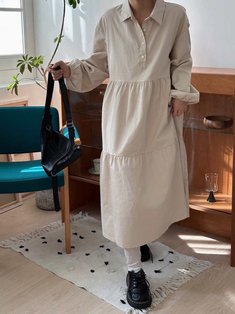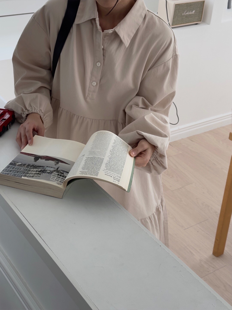 品名:노아캉캉 카라 롱 OPS ◎※☞颜色:네이비, 베이지, 아이보리 ◎※☞尺寸:FREE ◎※☞材质:纯棉 100% 翻译