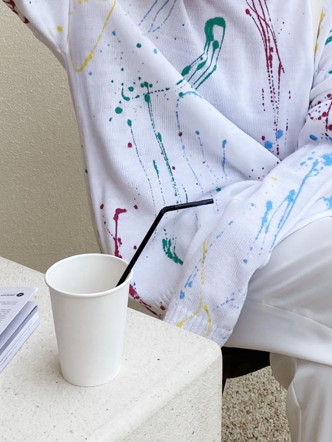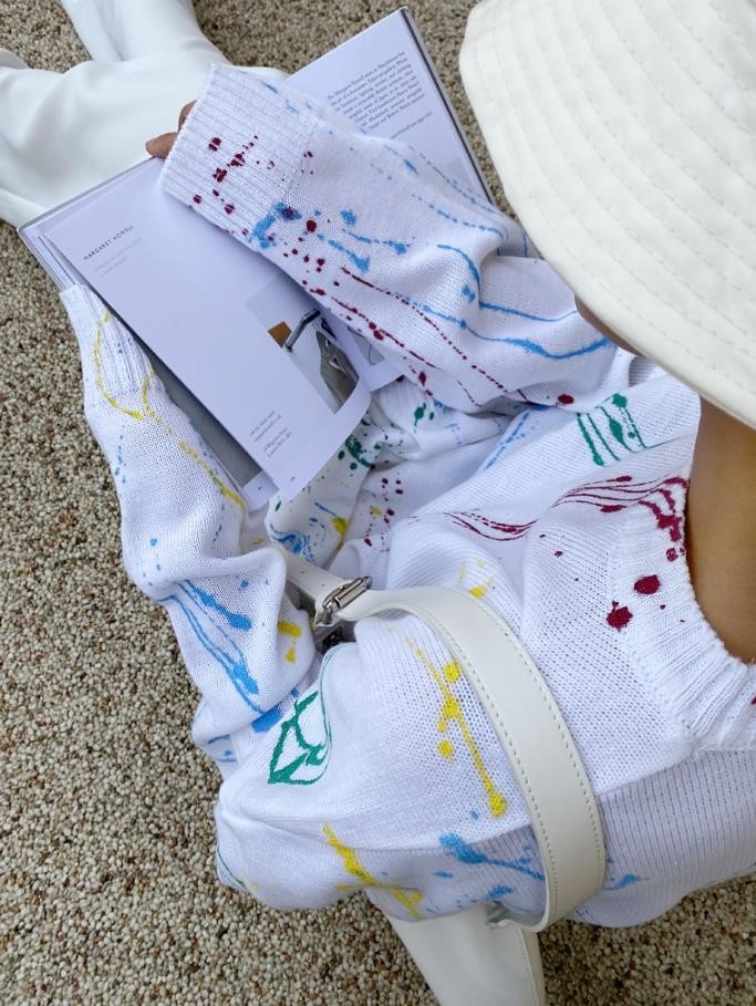 品名:4색페인팅니트 ◎※☞颜色:블랙, 화이트 ◎※☞尺寸:FREE ◎※☞材质:腈纶 100% 翻译
