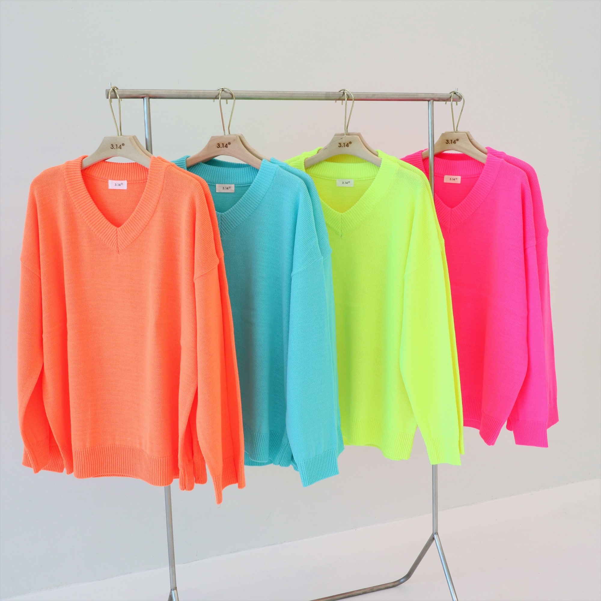 品名:세로니 형광V넥 니트 ◎※☞颜色:민트블루, 핑크, 형광연두, 형광주황 ◎※☞尺寸:FREE ◎※☞材质:腈纶 100% 翻译