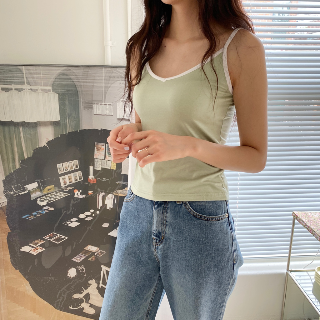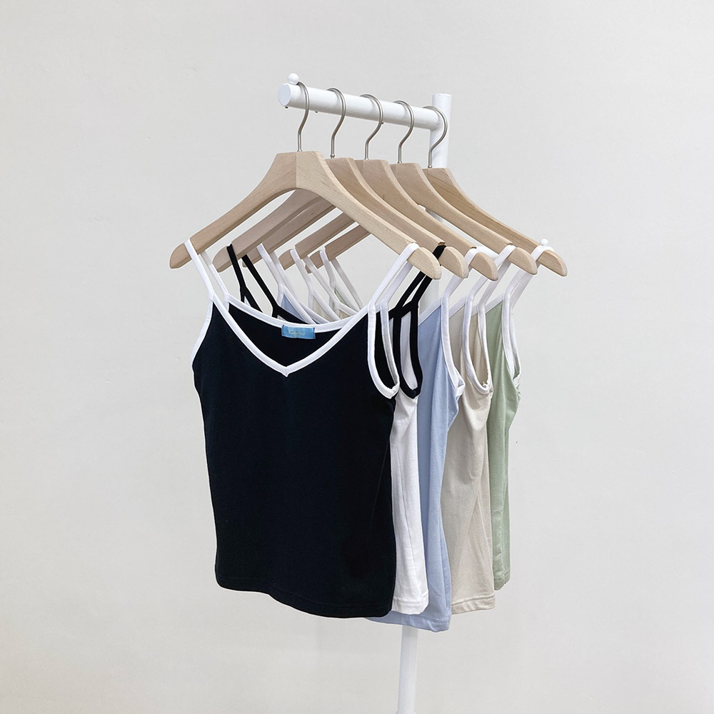 品名:배색나시(#끈#스판#브이넥) ◎※☞颜色:그린, 베이지, 블랙, 소라, 아이보리 ◎※☞尺寸:FREE ◎※☞材质:人造纤维 95%,弹力 5% 翻译