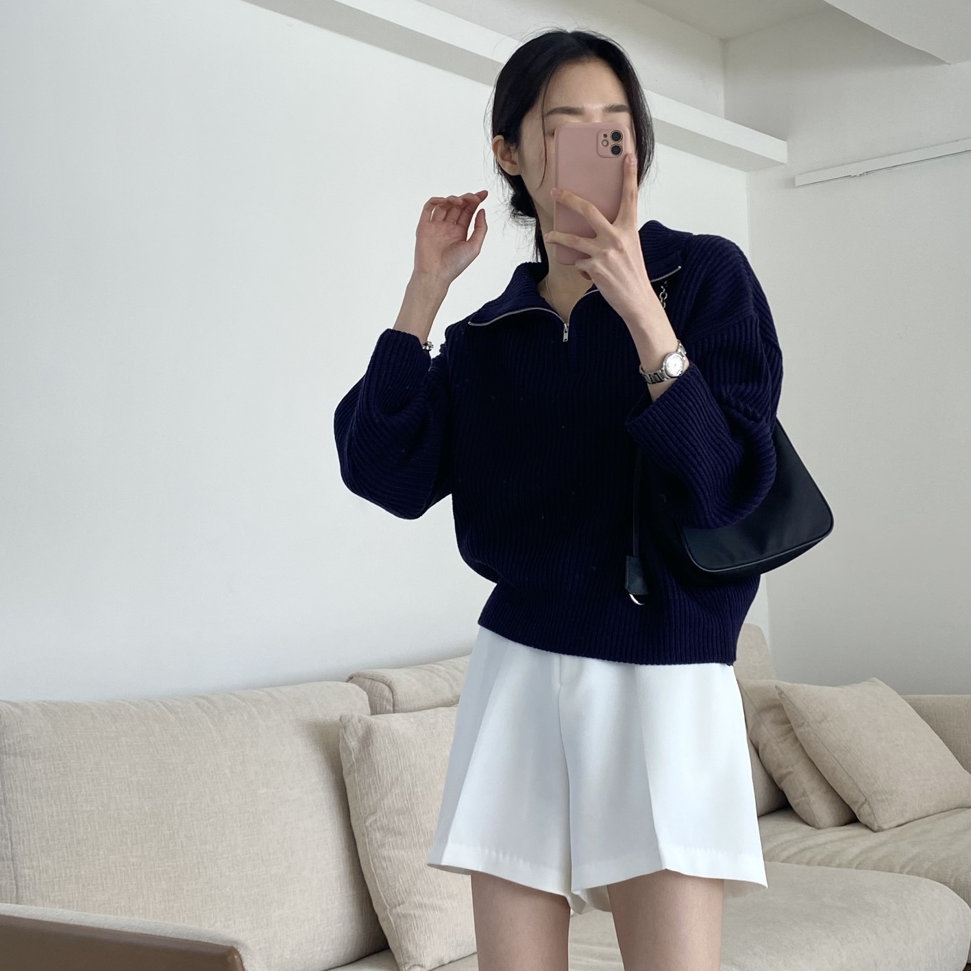 品名:솔리드집업(신상,카라집업,니트집업,무지집업) ◎※☞颜色:네이비, 블랙, 아이보리 ◎※☞尺寸:FREE ◎※☞材质:腈纶 100% 翻译