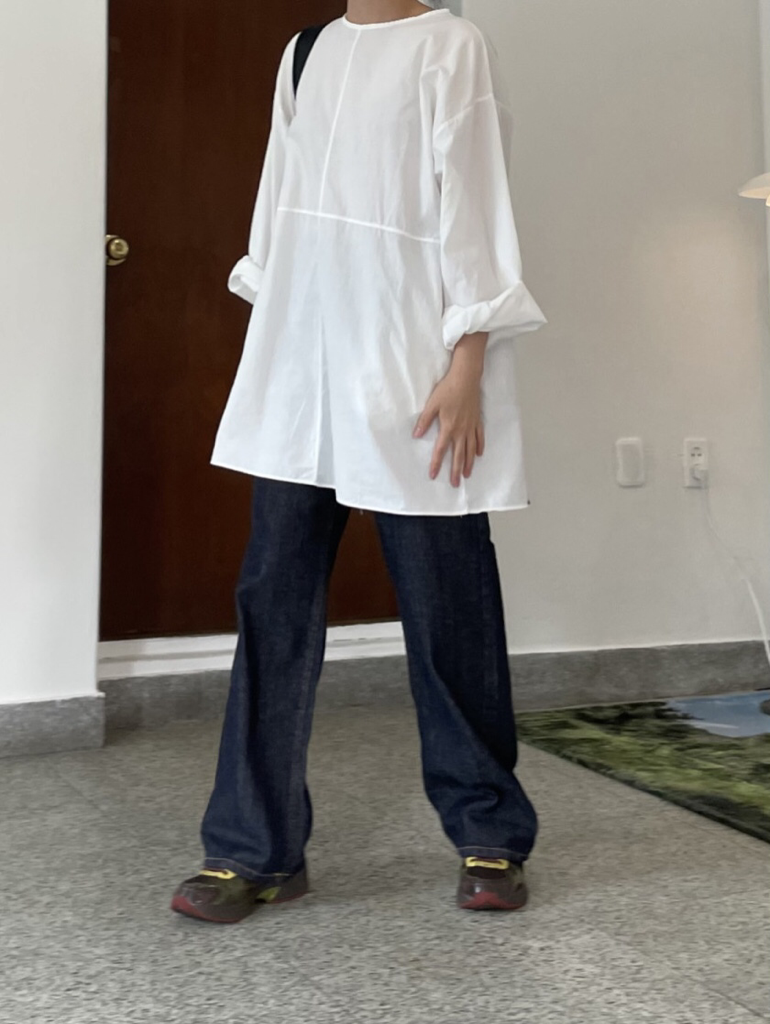 品名:퐁듀긴팔 십자 OPS ◎※☞颜色:베이지, 블랙, 아이보리 ◎※☞尺寸:FREE ◎※☞材质:纯棉 100% 翻译