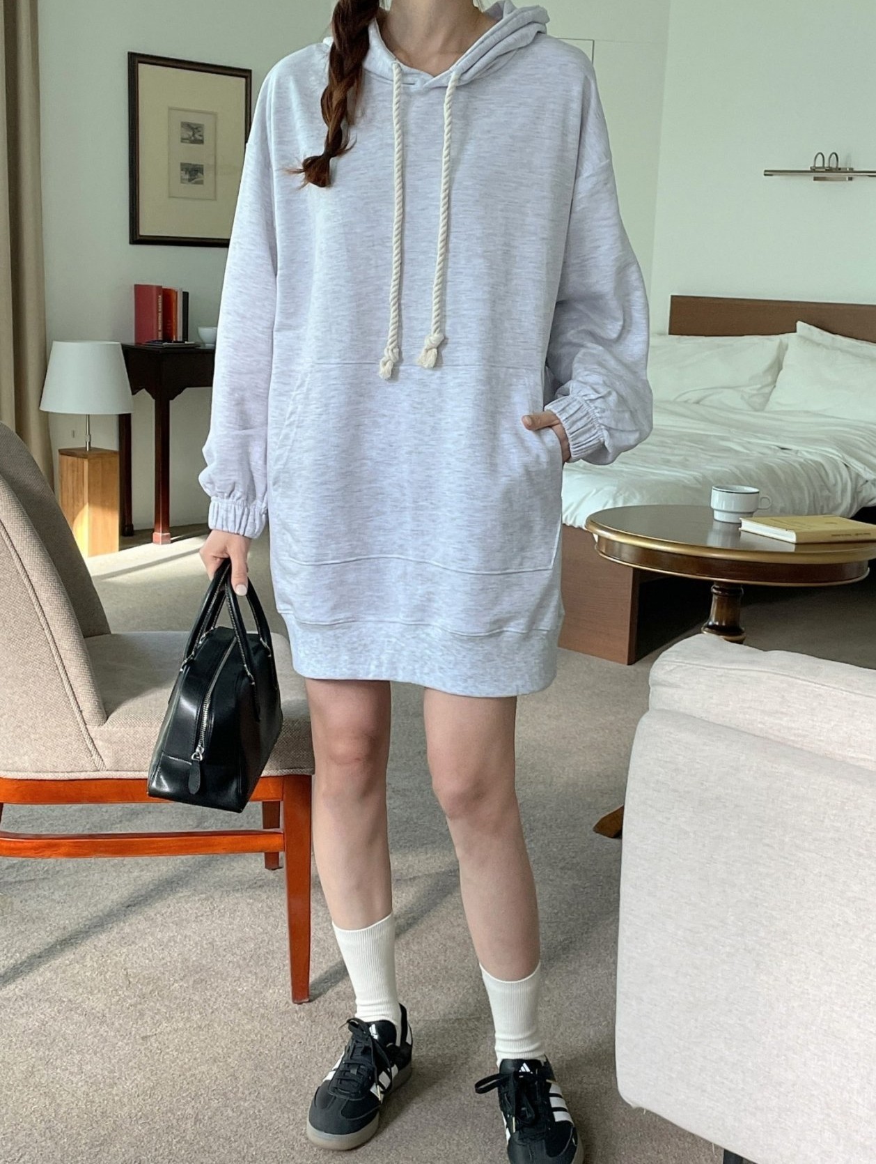 品名:#로프후드포켓미니원피스 ◎※☞颜色:백메란지, 블랙, 핑크 ◎※☞尺寸:FREE ◎※☞材质:纯棉 100% ◎※☞注意事项:只能干洗,只能手洗,不能手洗,机洗,不能使用漂白剂,不能烘干,不能熨烫,不能曲折