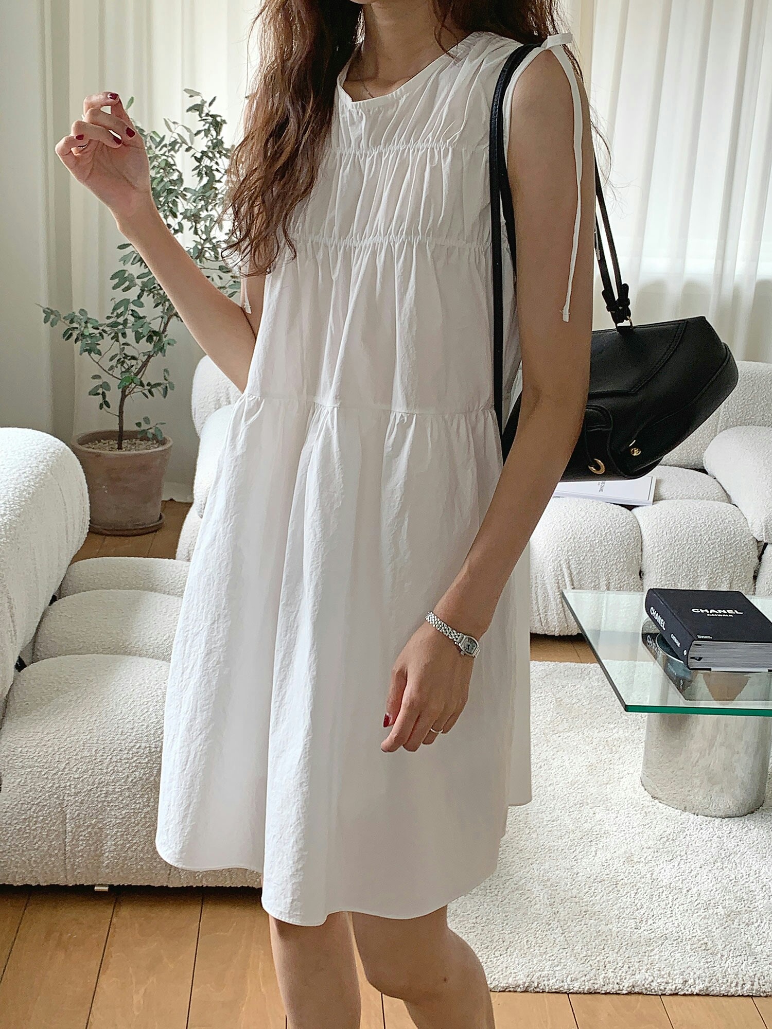 品名:썸머#22 키코 리본 원피스 ◎※☞颜色:블랙, 아이보리 ◎※☞尺寸:FREE ◎※☞材质:纯棉 100% 翻译