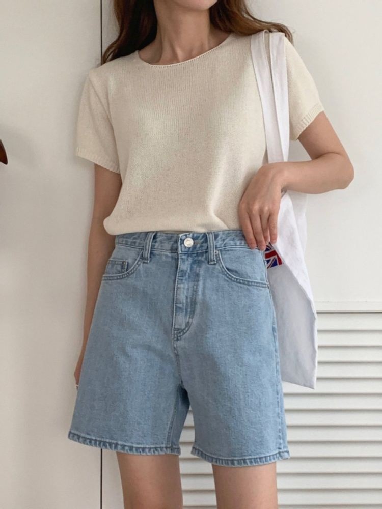 品名:时尚高腰显腿长牛仔短裤 ◎※☞颜色:연청, 진청 ◎※☞尺寸:M, S ◎※☞材质:상세참조 100% 翻译