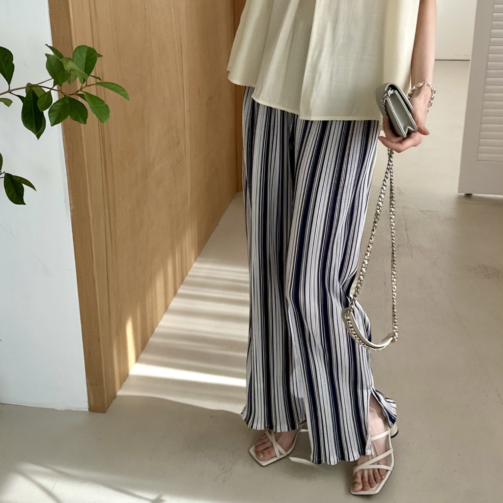 品名:링클팬츠 (링클PT,밴딩팬츠,나염팬츠,주름바지,스트라이프팬츠,패턴바지) ◎※☞颜色:네이비, 네이비스트라이프, 브라운, 소라스트라이프, 퍼플 ◎※☞尺寸:FREE ◎※☞材质:聚酯 100% 翻译