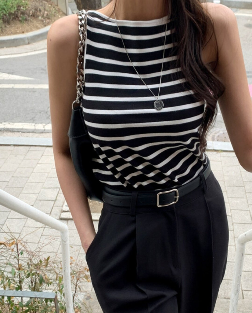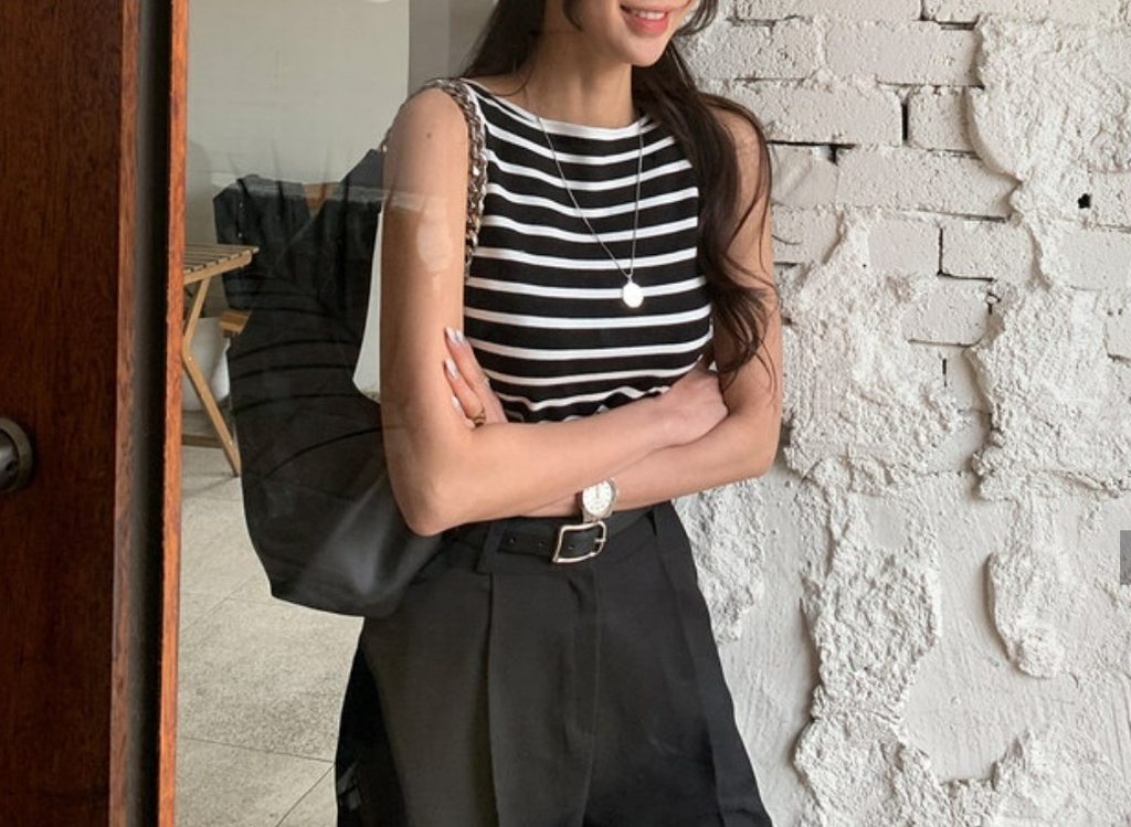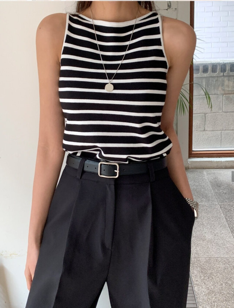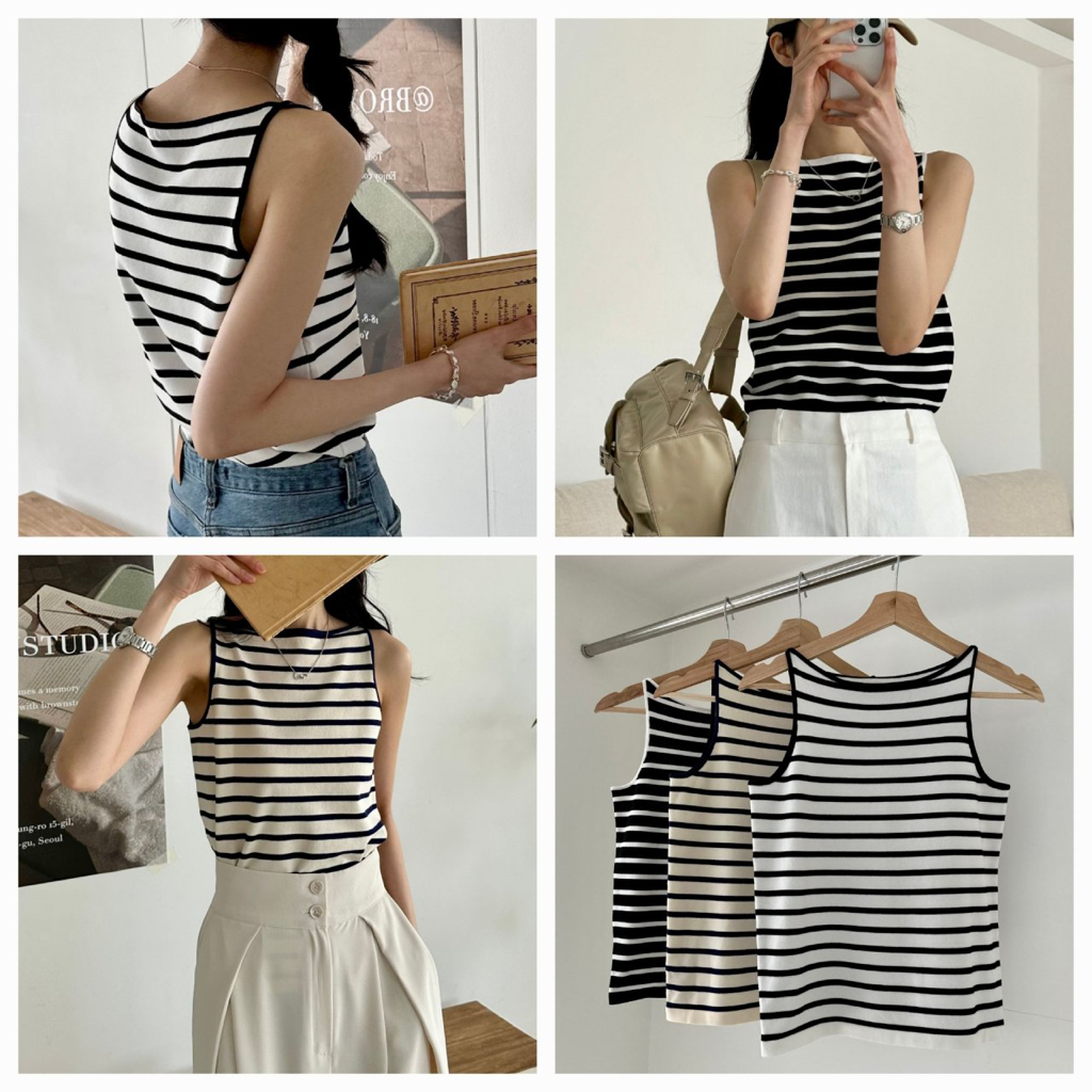 品名:로로 스트라이프나시 (니트나시,단가라,NT,여름니트,비스코스,로로ST나시) ◎※☞颜色:네이비, 블랙, 아이보리 ◎※☞尺寸:FREE ◎※☞材质:비스코스 65%,聚酯 20%,尼龙 15% 翻译