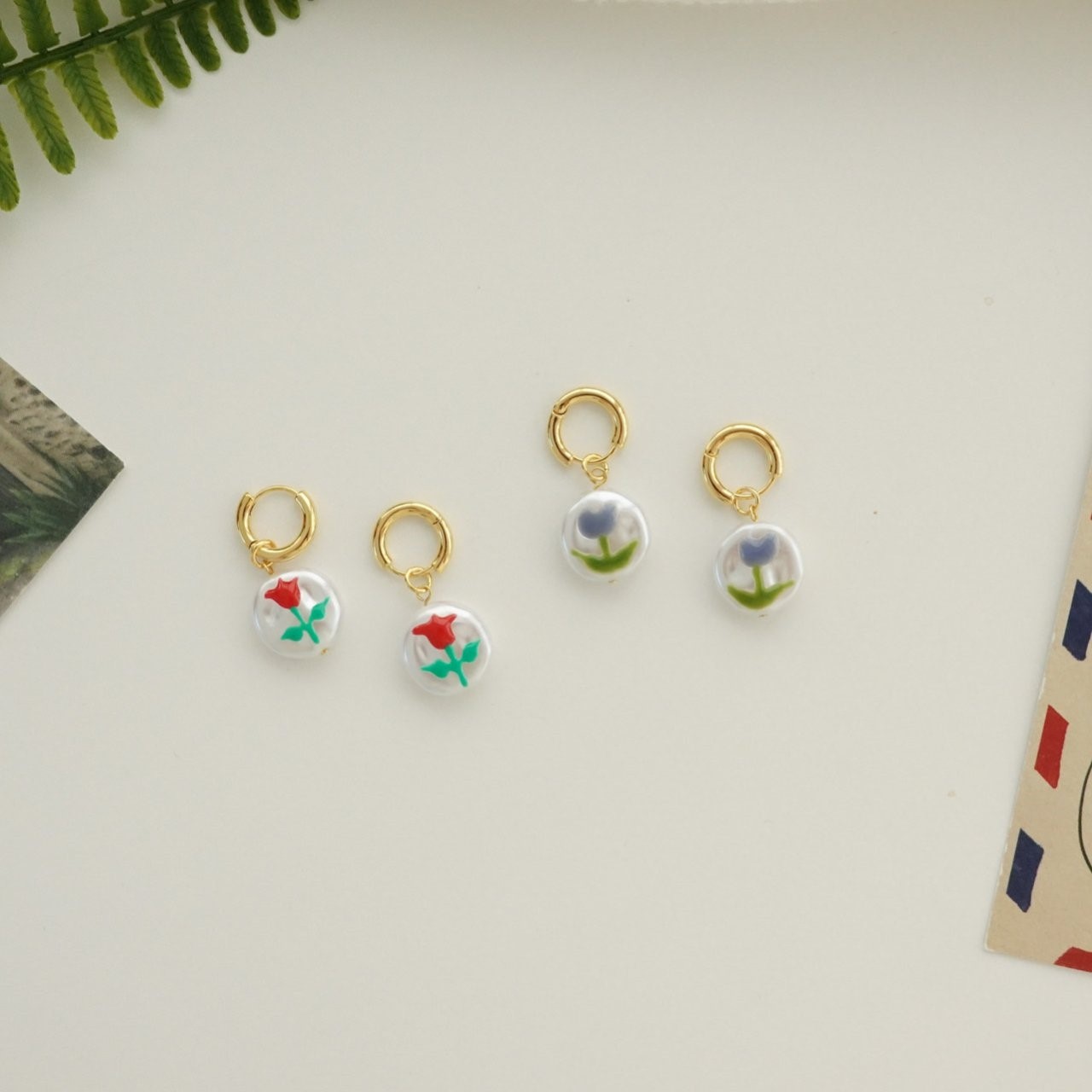 品名:E3023 튤립 귀걸이 ◎※☞颜色:레드, 블루 ◎※☞尺寸:FREE ◎※☞材质:镀金 0% 翻译
