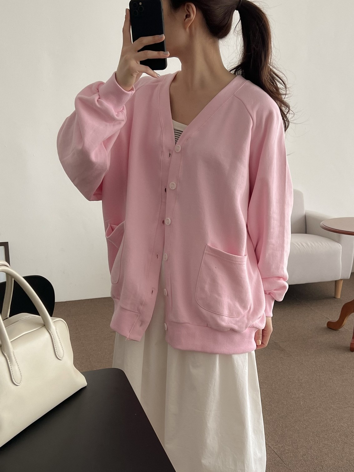 品名:나그랑CD #가디건 #오버핏 #간절기 ◎※☞颜色:그레이, 네이비, 아이보리, 핑크 ◎※☞尺寸:FREE ◎※☞材质:纯棉 100% 翻译