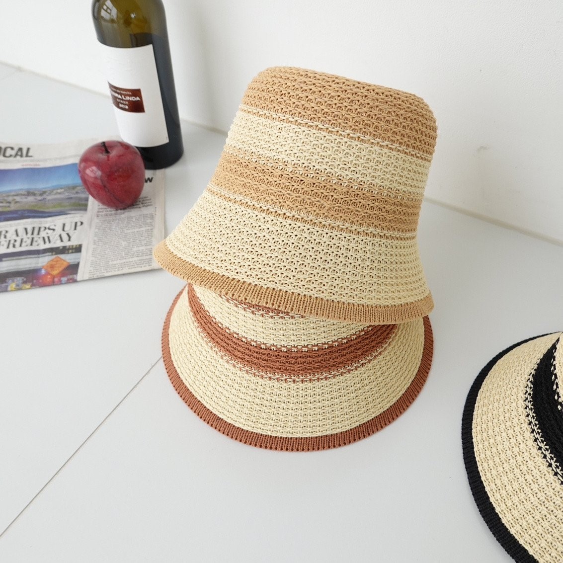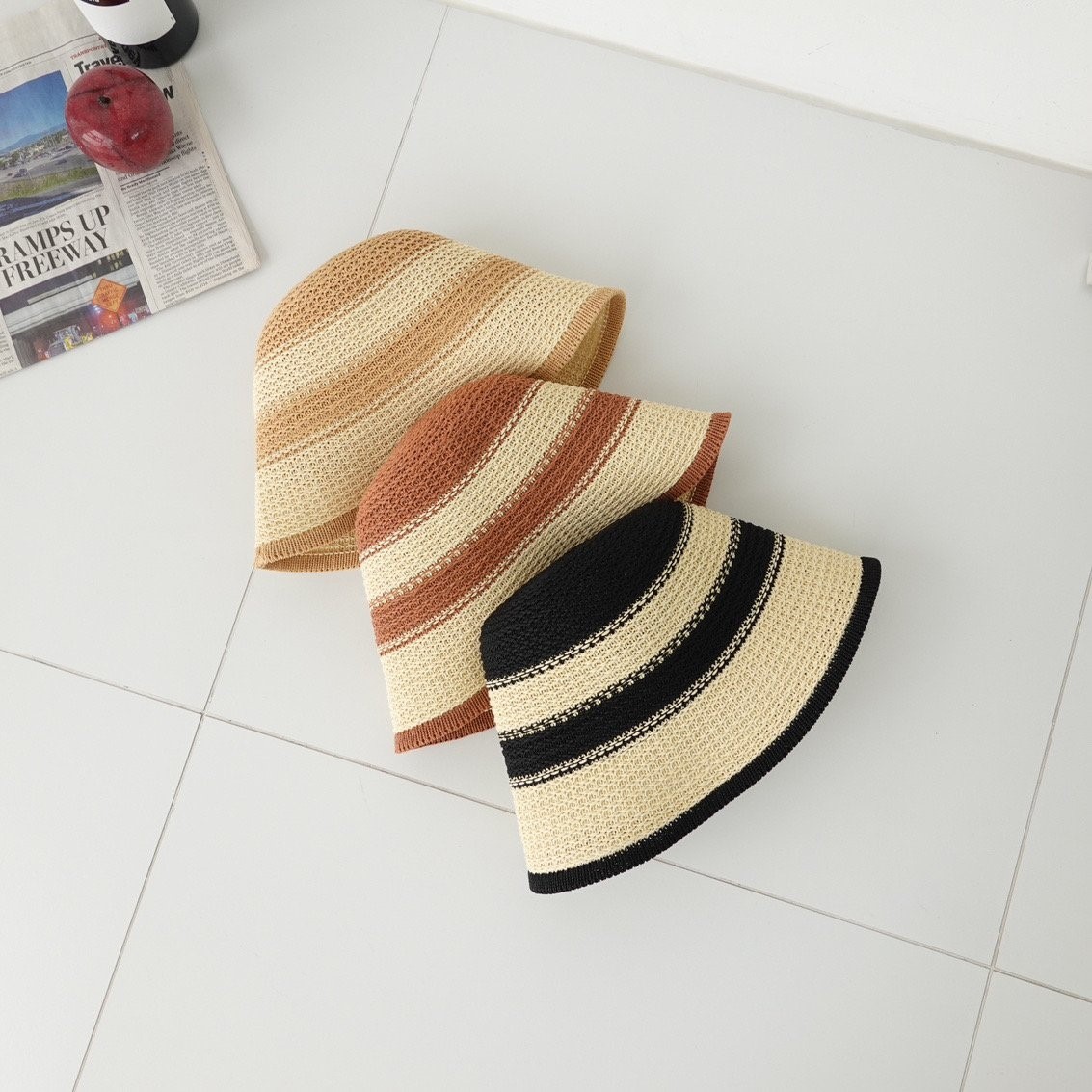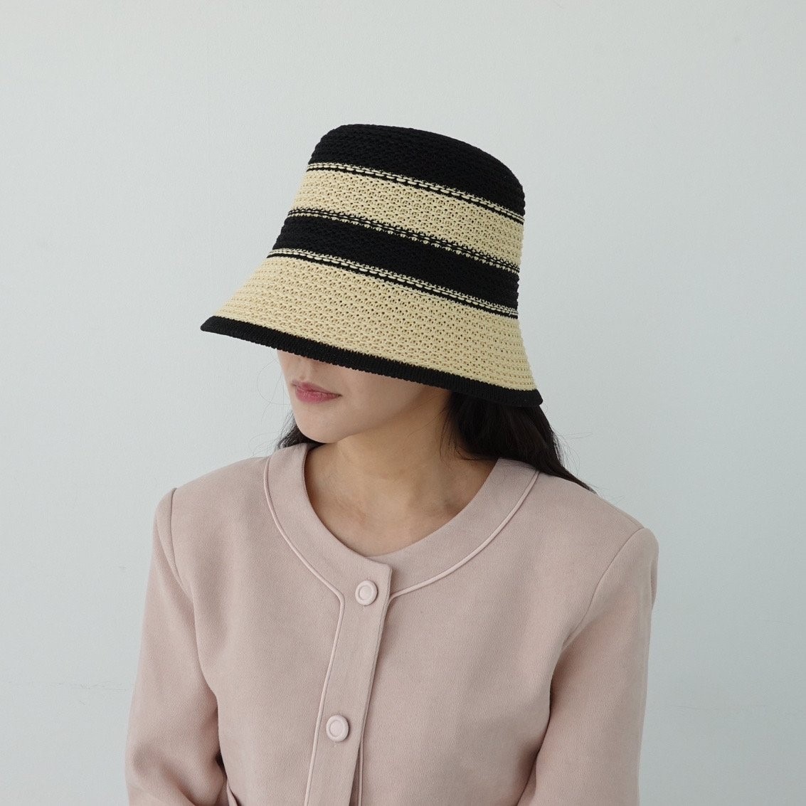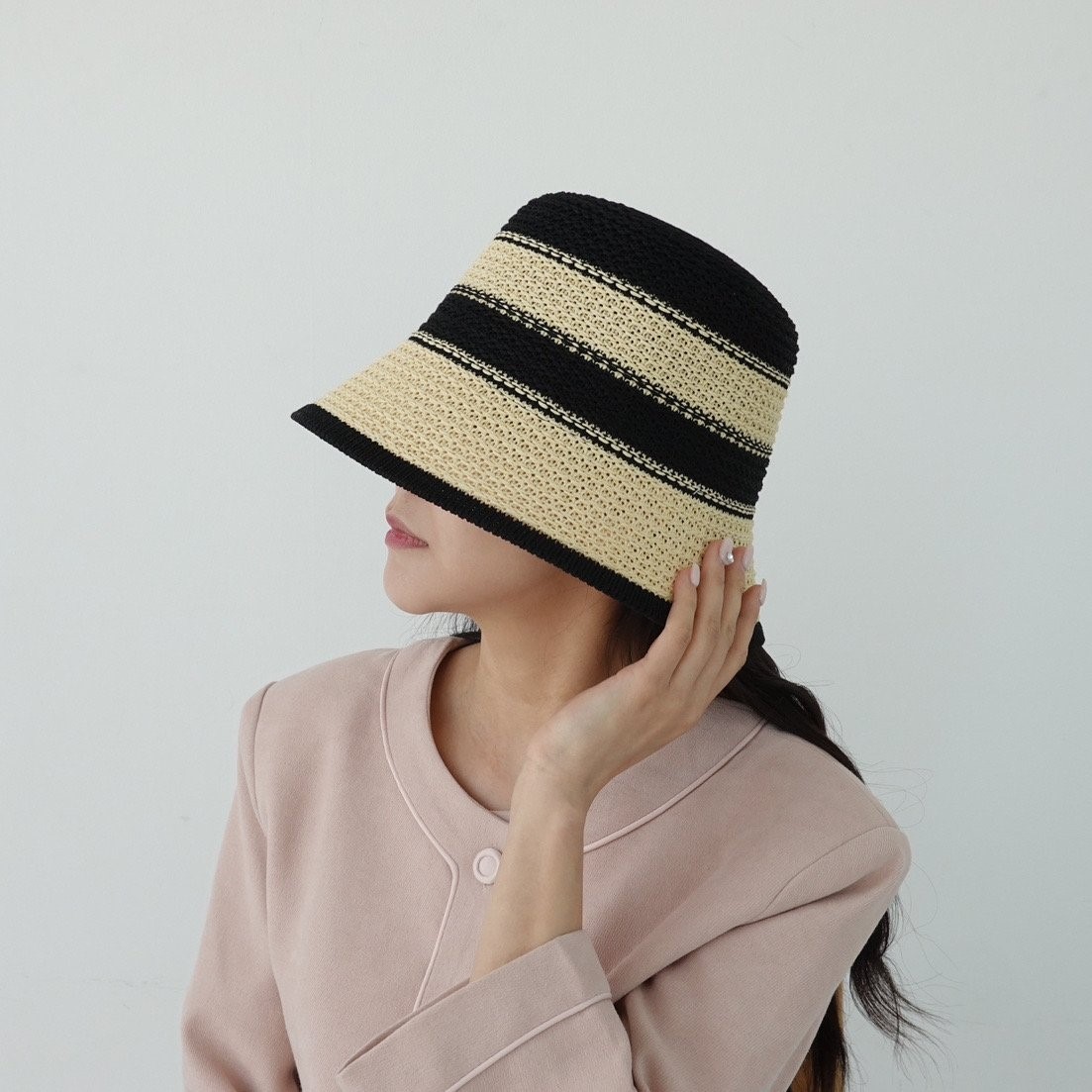 品名:BH1174 스트라이프 지사 버킷햇 ◎※☞颜色:베이지, 블랙, 코랄 ◎※☞尺寸:F ◎※☞材质:PAPER 100% 翻译