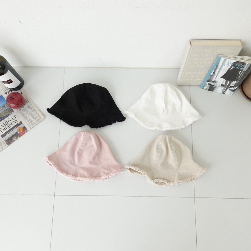 品名:BH1173 벨 데미지 버킷햇 ◎※☞颜色:베이지, 블랙, 핑크, 화이트 ◎※☞尺寸:F ◎※☞材质:纯棉 100% 翻译