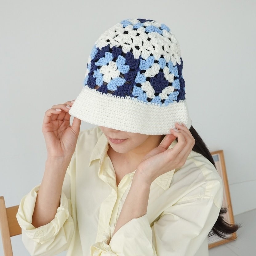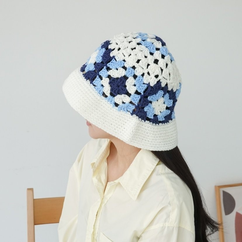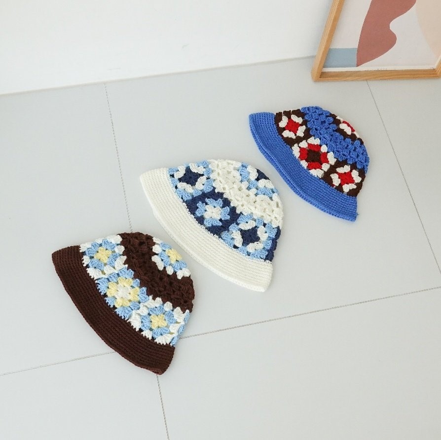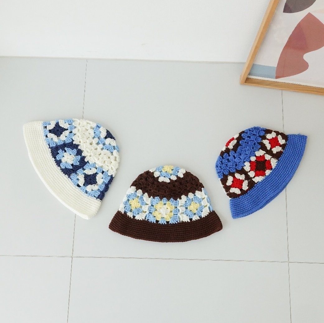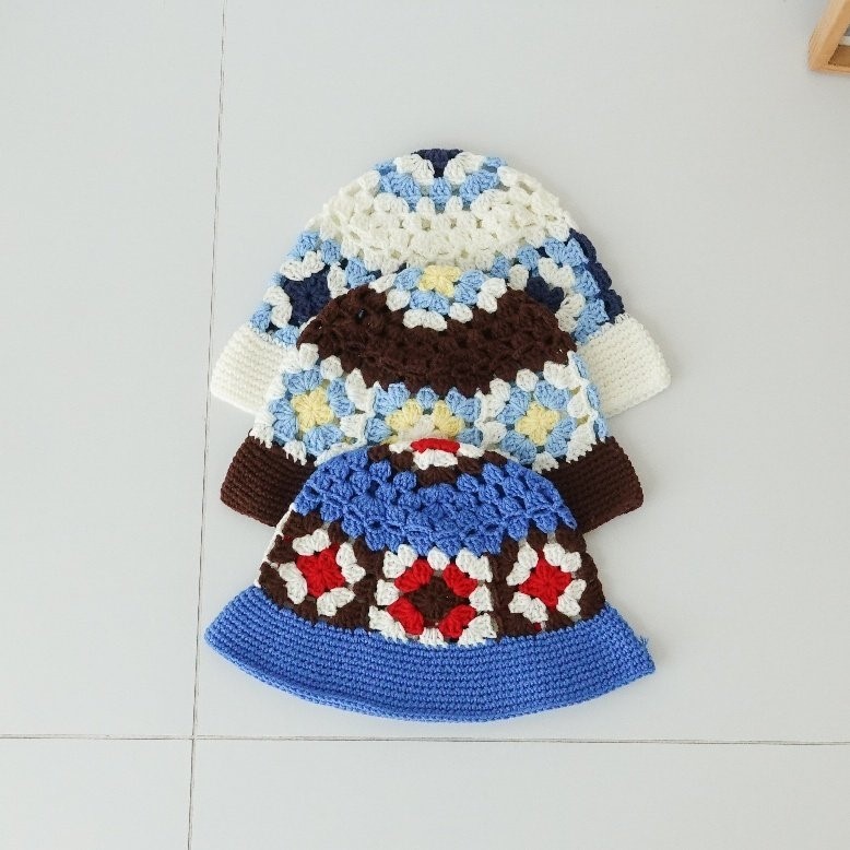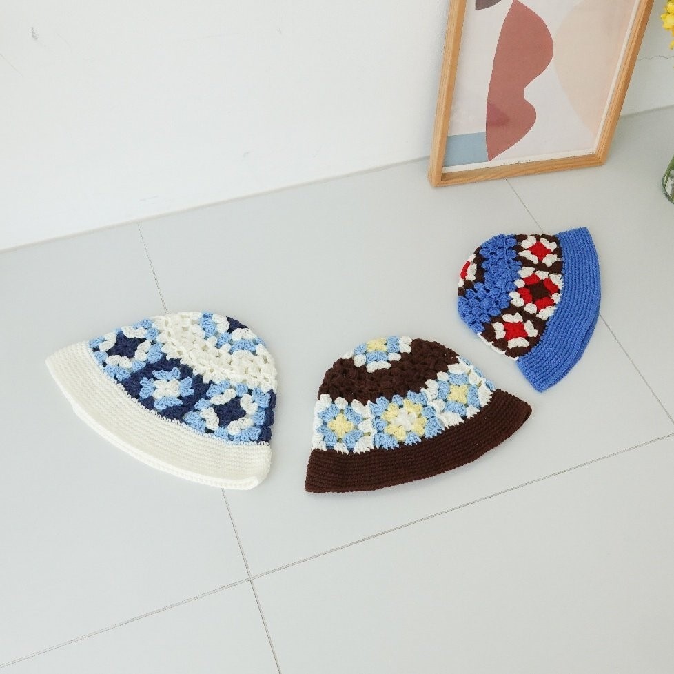 品名:BH1154 플라워 배색 니트 버킷햇 ◎※☞颜色:브라운, 블루, 화이트 ◎※☞尺寸:F ◎※☞材质:腈纶 100% 翻译