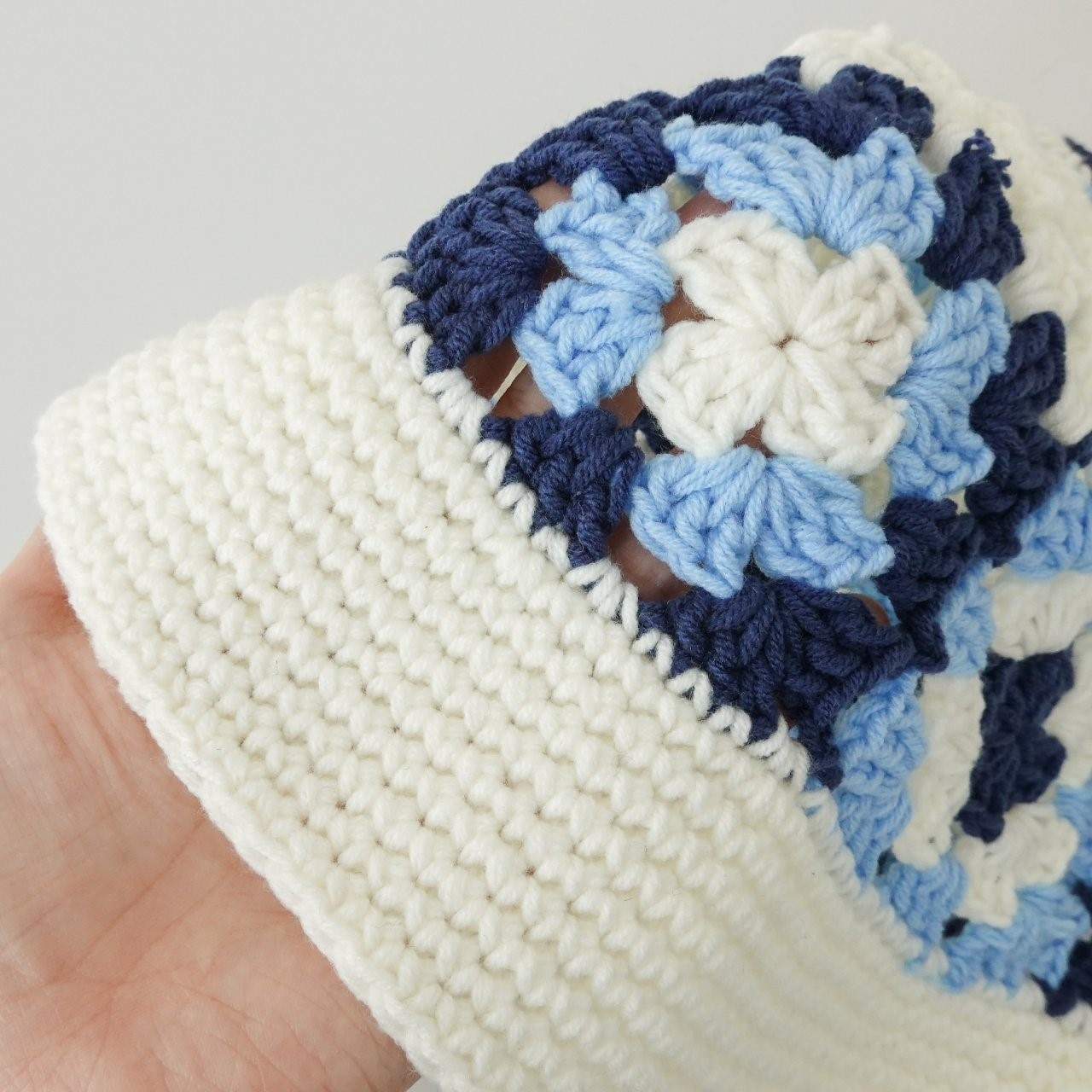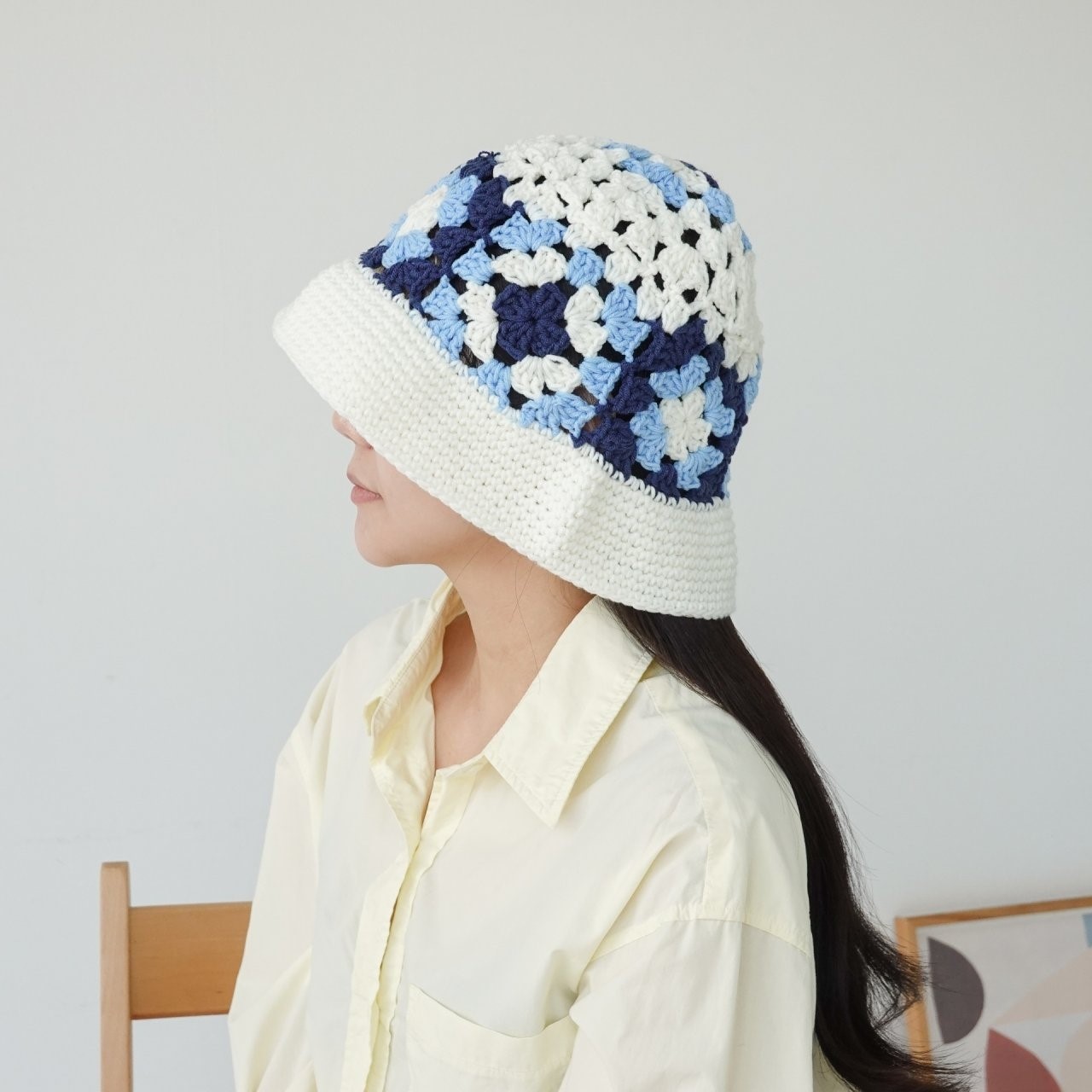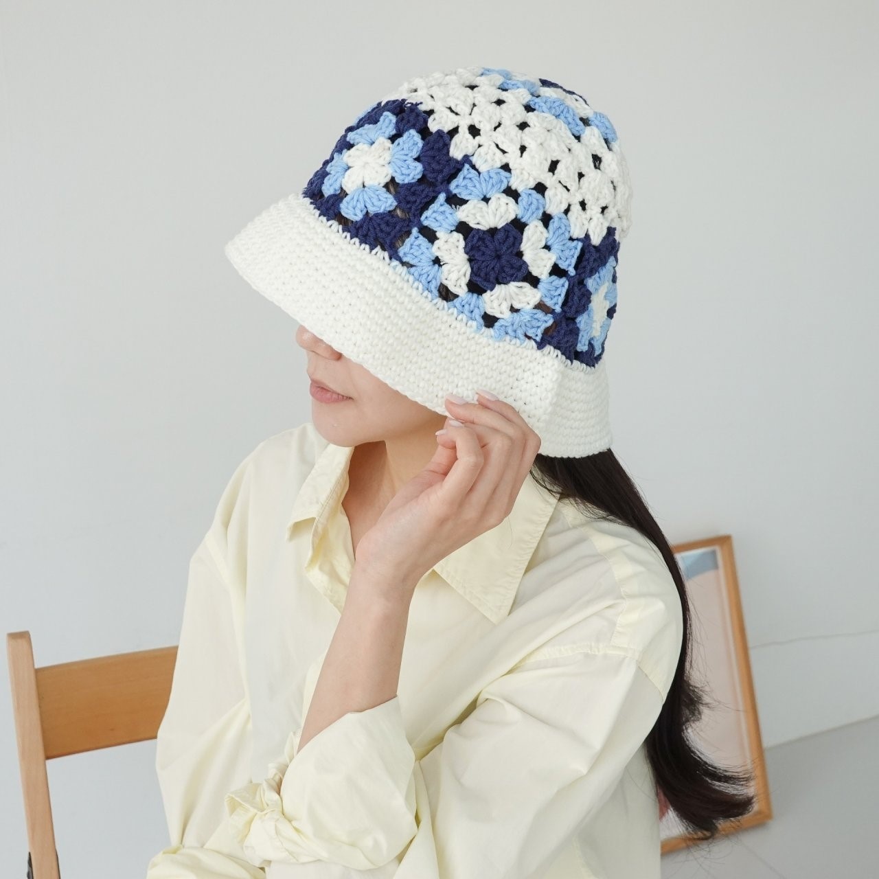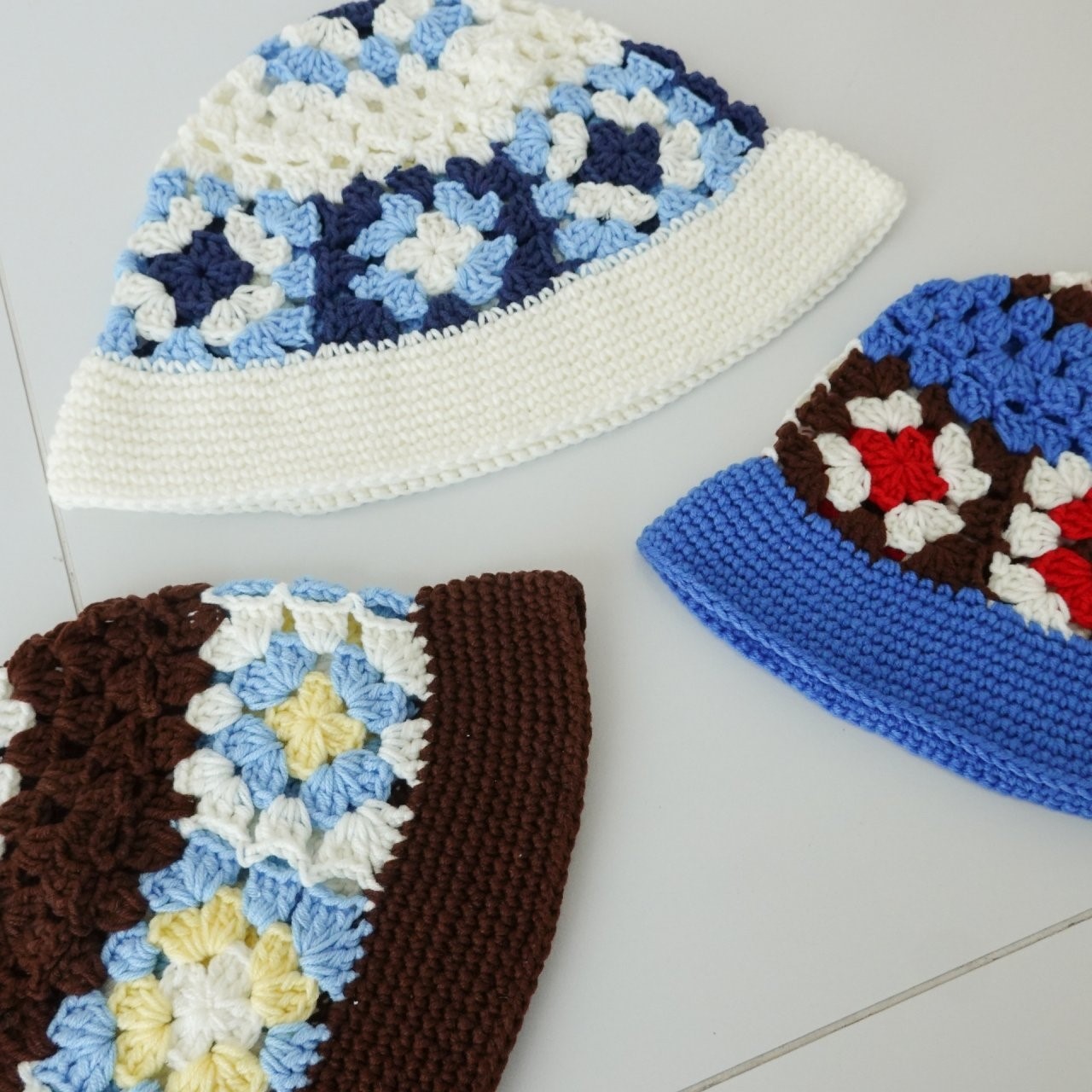 品名:BH1154 플라워 배색 니트 버킷햇 ◎※☞颜色:브라운, 블루, 화이트 ◎※☞尺寸:F ◎※☞材质:腈纶 100% 翻译