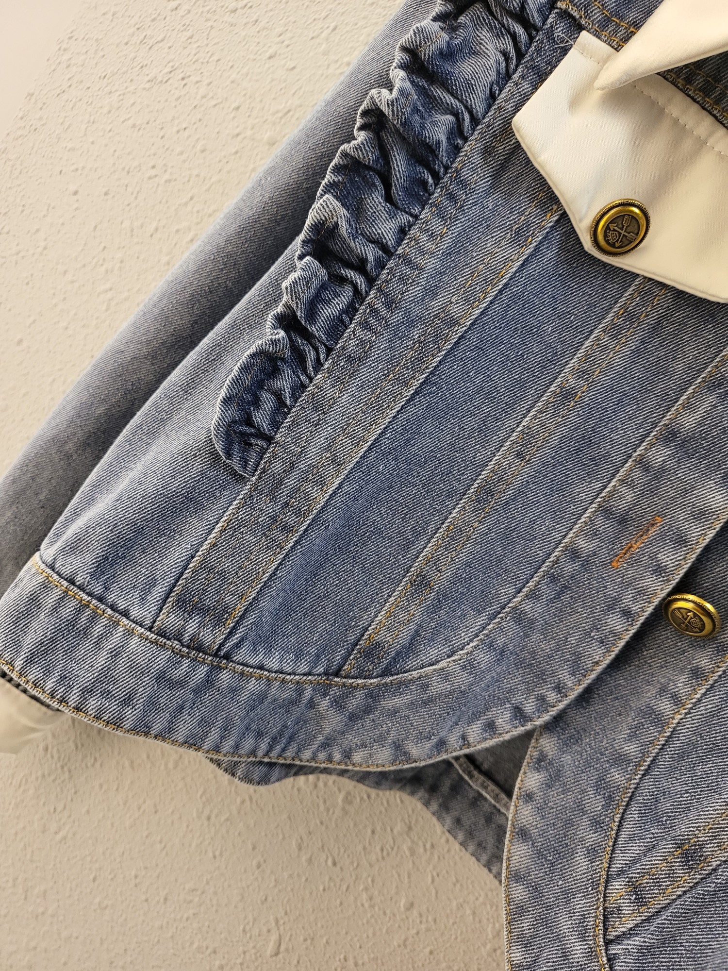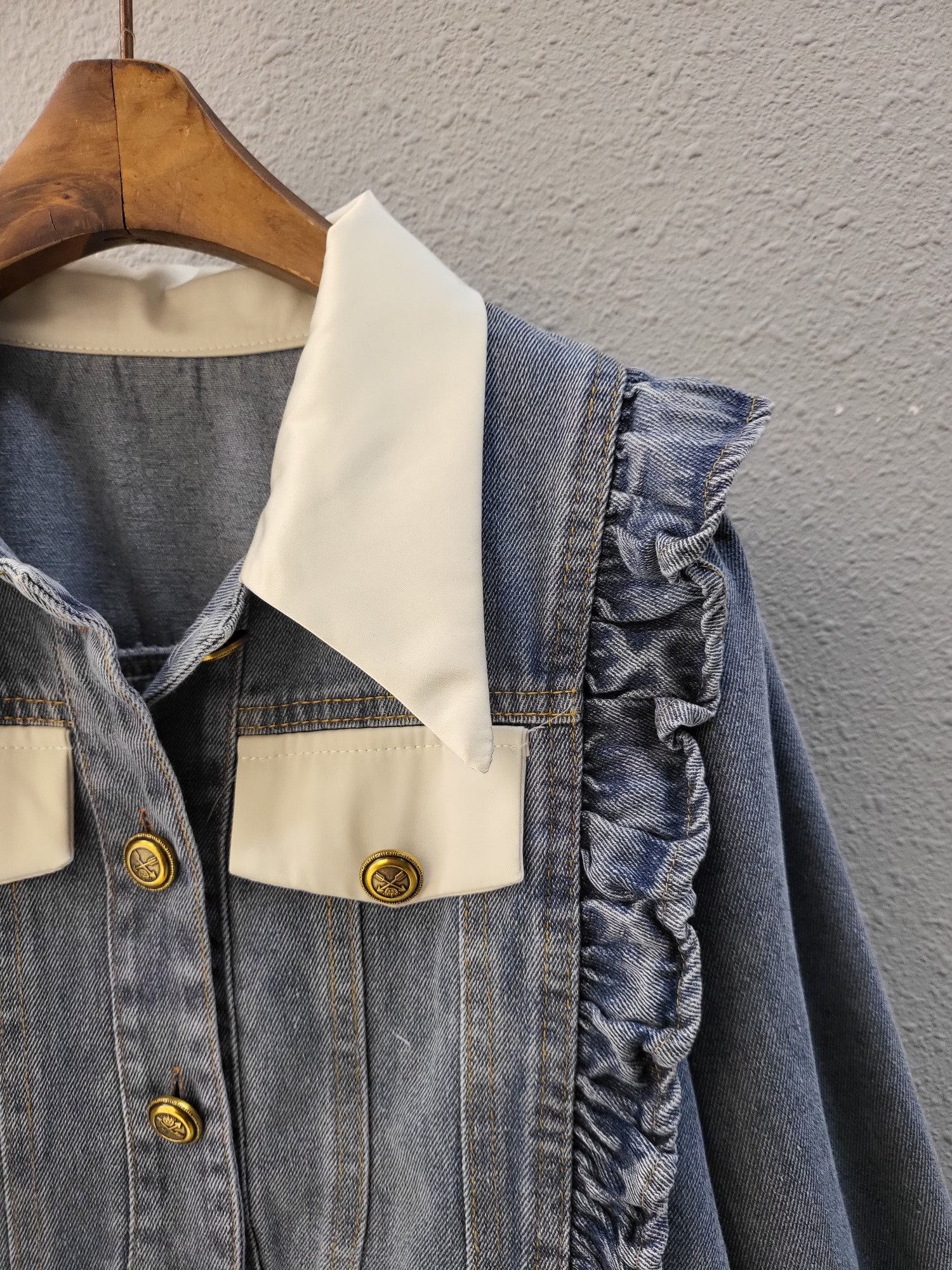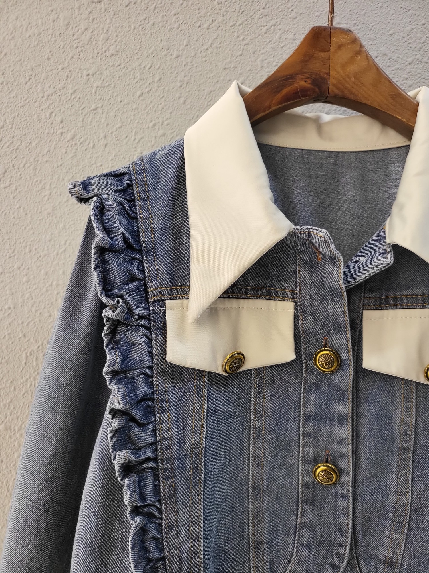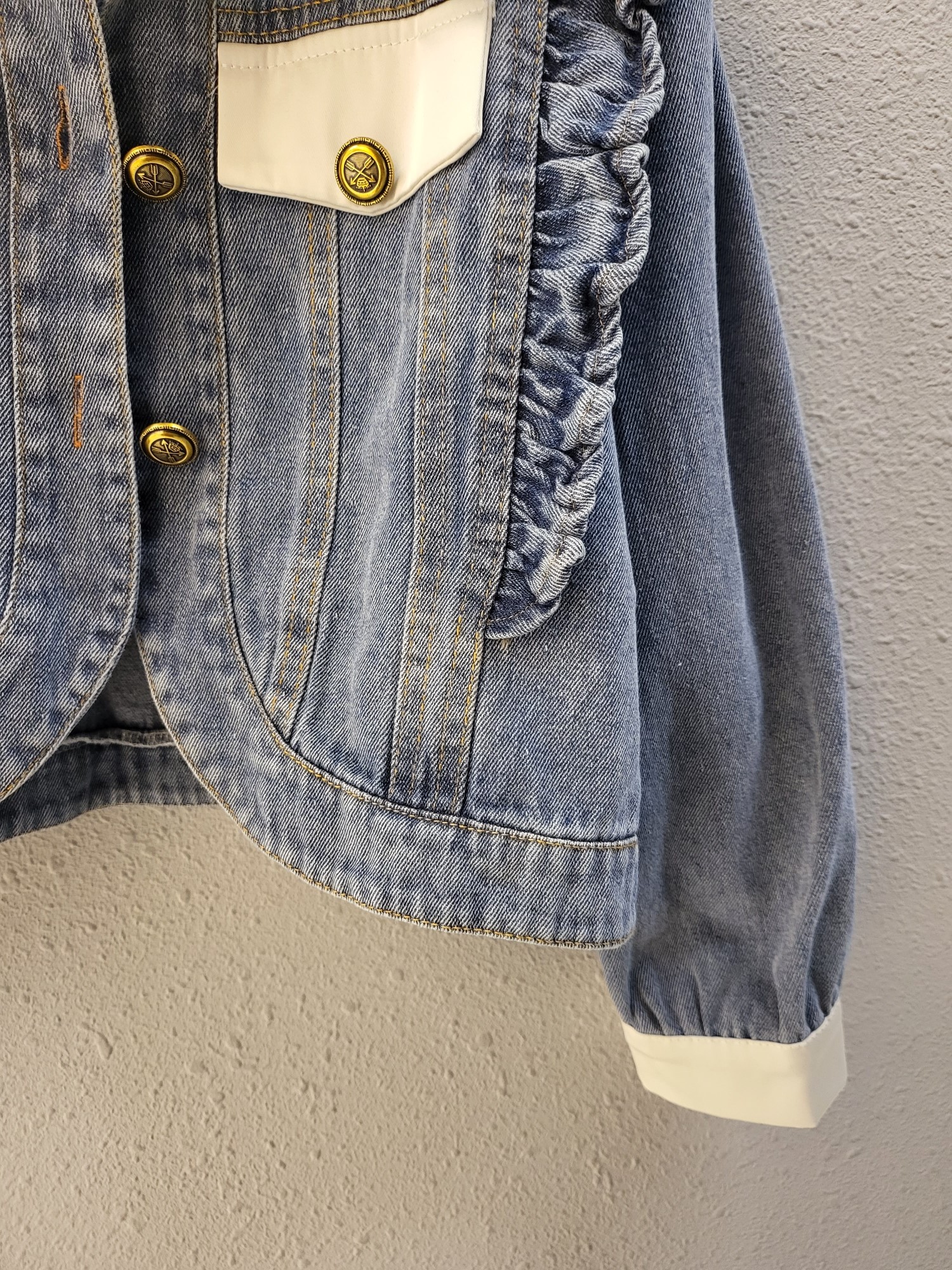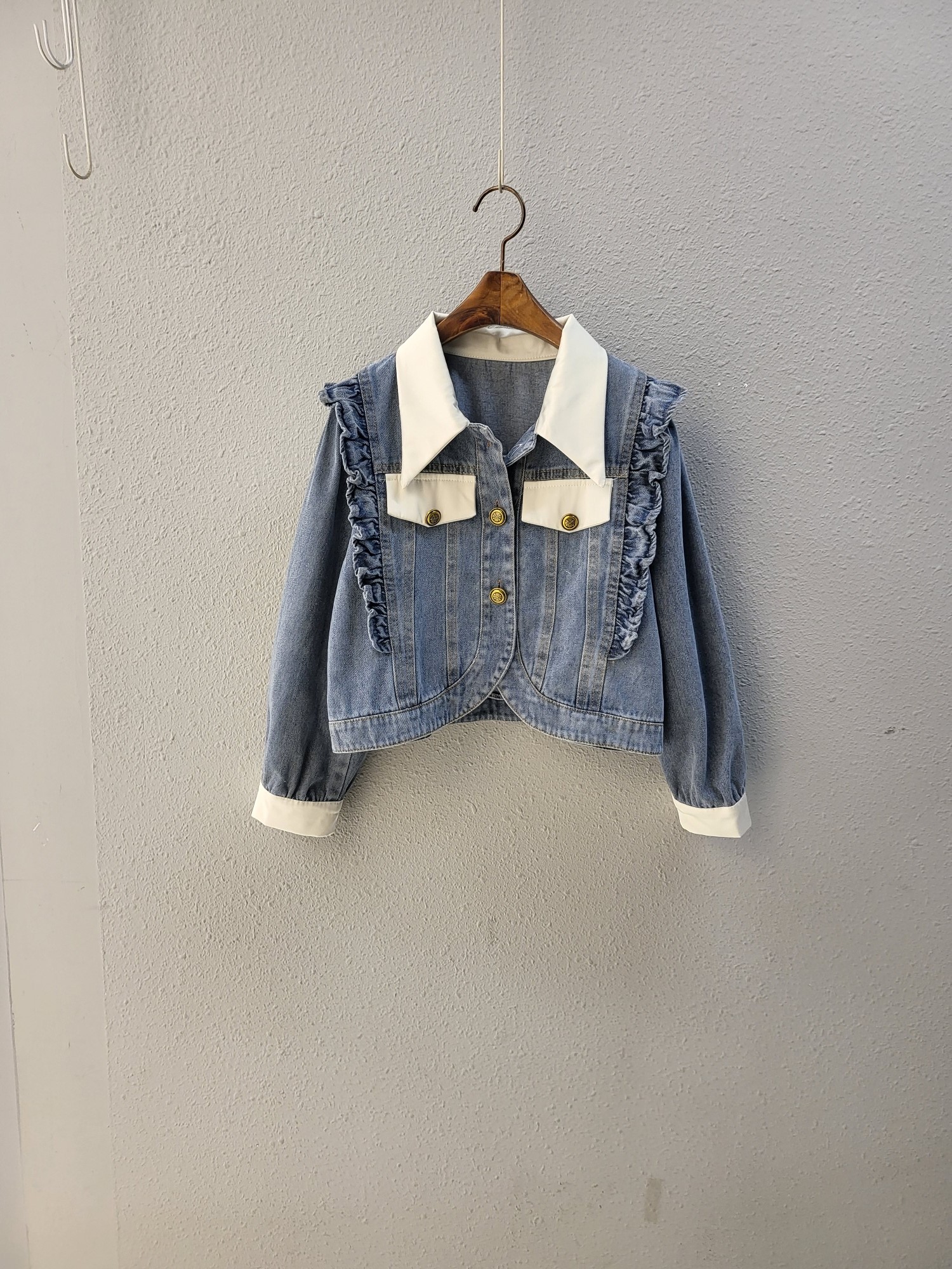 品名:큐티 러블리 배색 프릴 데님 자켓 ◎※☞颜色:청 ◎※☞尺寸:FREE ◎※☞材质:纯棉 100% ◎※☞注意事项:只能干洗,只能手洗,不能手洗,机洗,不能使用漂白剂,不能烘干,不能熨烫,不能曲折 翻译