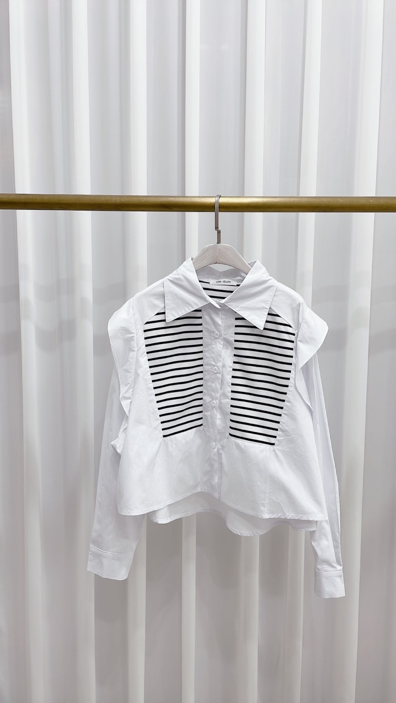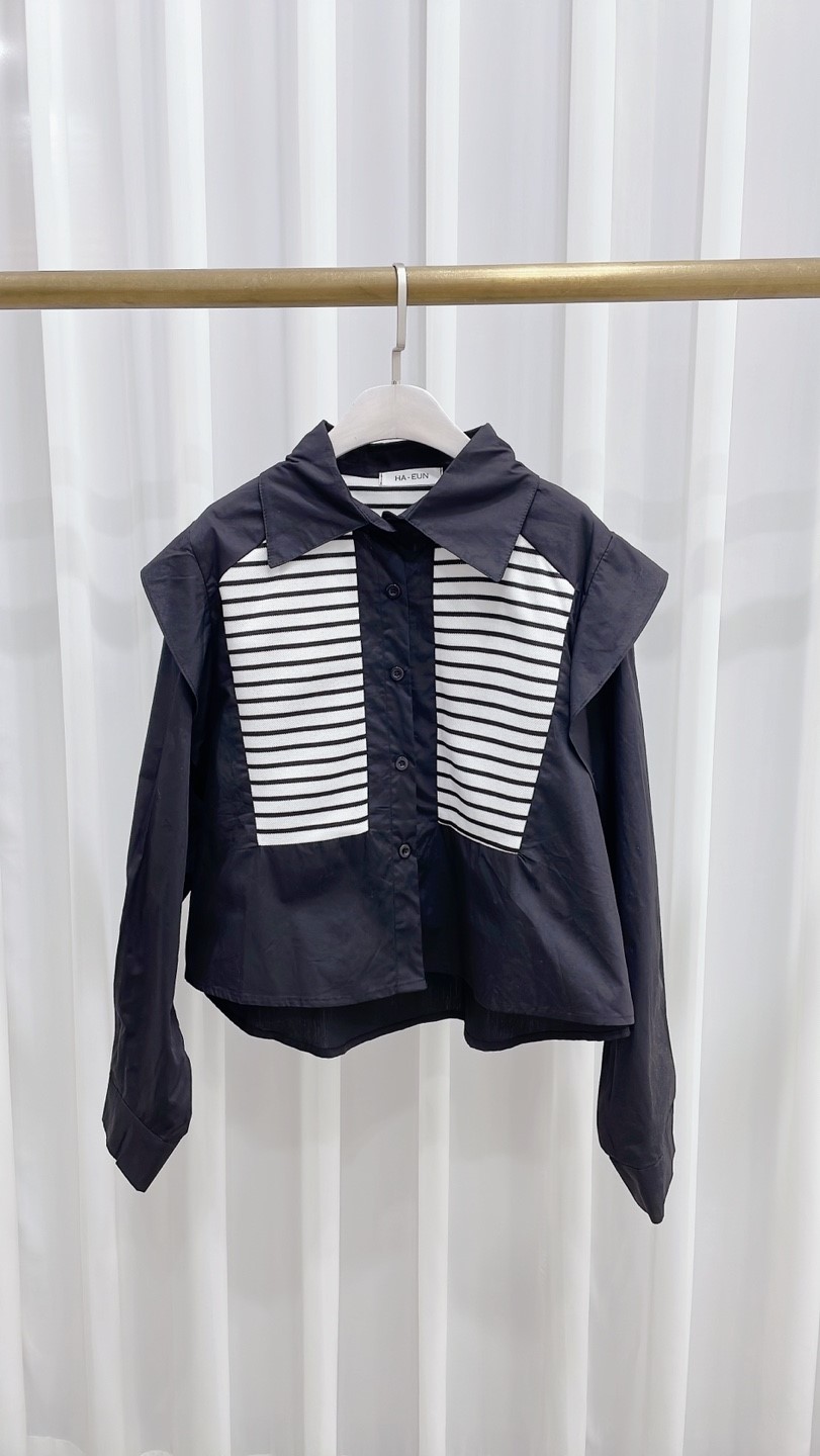 品名:배색스트라이프셔츠 #여성상의캐주얼시크로맨틱간절기하객패션나들이룩 ◎※☞颜色:블랙, 화이트 ◎※☞尺寸:FREE ◎※☞材质:纯棉 100% 翻译