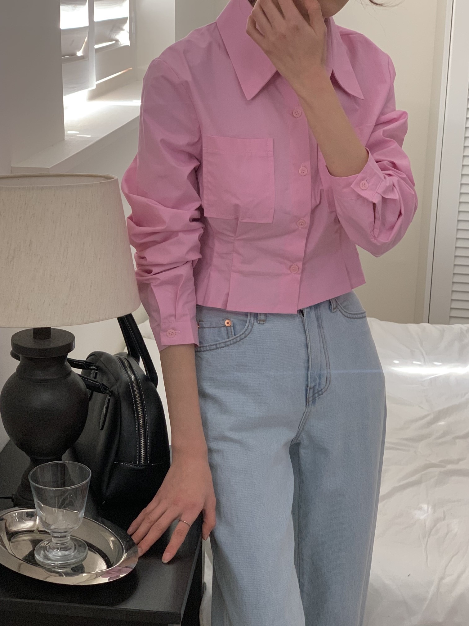 品名:M1)브릿지 셔츠 ◎※☞颜色:아이보리, 파랑, 핑크 ◎※☞尺寸:FREE ◎※☞材质:纯棉 100% ◎※☞注意事项:只能干洗,只能手洗,不能手洗,机洗,不能使用漂白剂,不能烘干,不能熨烫,不能曲折 翻译