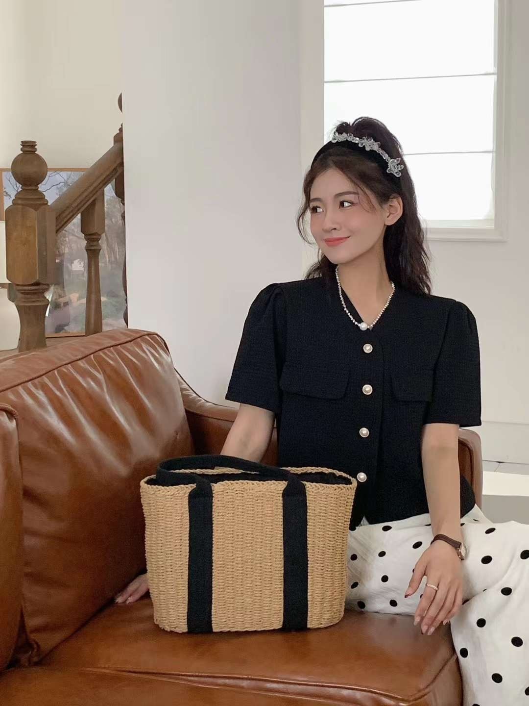 品名:주문폭주 와플진주블라우스 ◎※☞颜色:블랙, 소라, 아이보리 ◎※☞尺寸:FREE ◎※☞材质:纯棉 30%,聚酯 70% 翻译