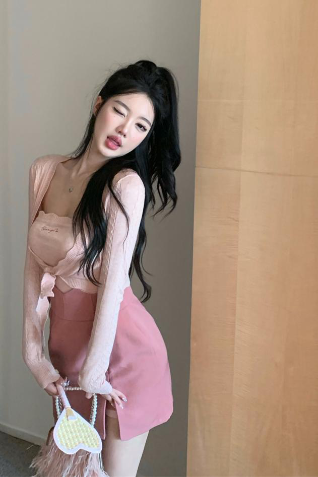 品名:큐11872 핑크소프트나시가디건치마세트 ◎※☞颜色:핑크 ◎※☞尺寸:M, S ◎※☞材质:合成皮革 100% 翻译