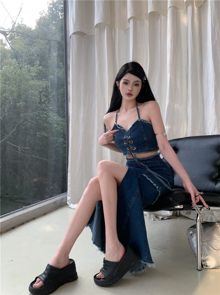 品名:피2855 스트랩리스탑슬릿데님스커트세트 ◎※☞颜色:청 ◎※☞尺寸:L, M, S ◎※☞材质:合成皮革 100% 翻译
