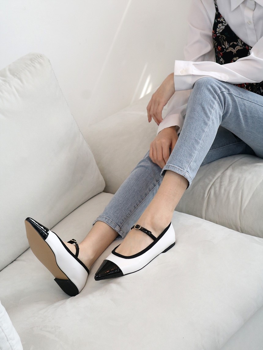 品名:[신상,스틸레토 메리제인 플랫슈즈]2174 ◎※☞颜色:베이지, 블랙, 화이트 ◎※☞尺寸:230, 235, 240, 245, 250 ◎※☞材质:合成皮革 0% 翻译