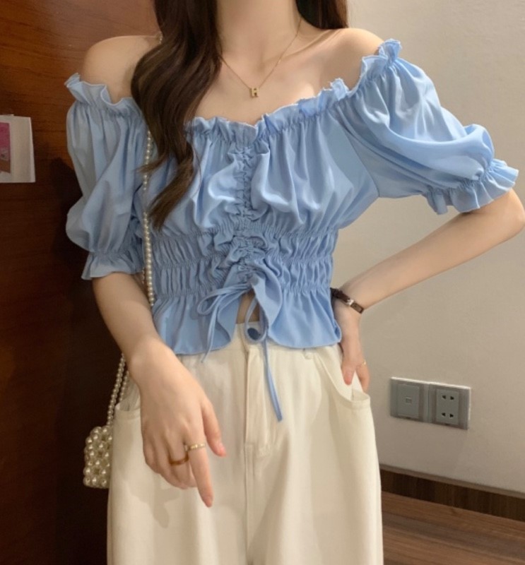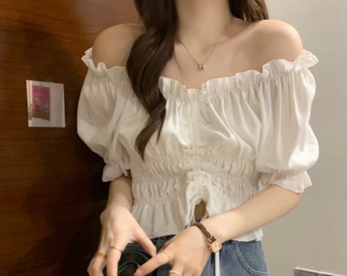 品名:세일 스트링오프숄더블라우스 ◎※☞颜色:블랙, 소라, 아이보리 ◎※☞尺寸:FREE ◎※☞材质:聚酯 100% 翻译
