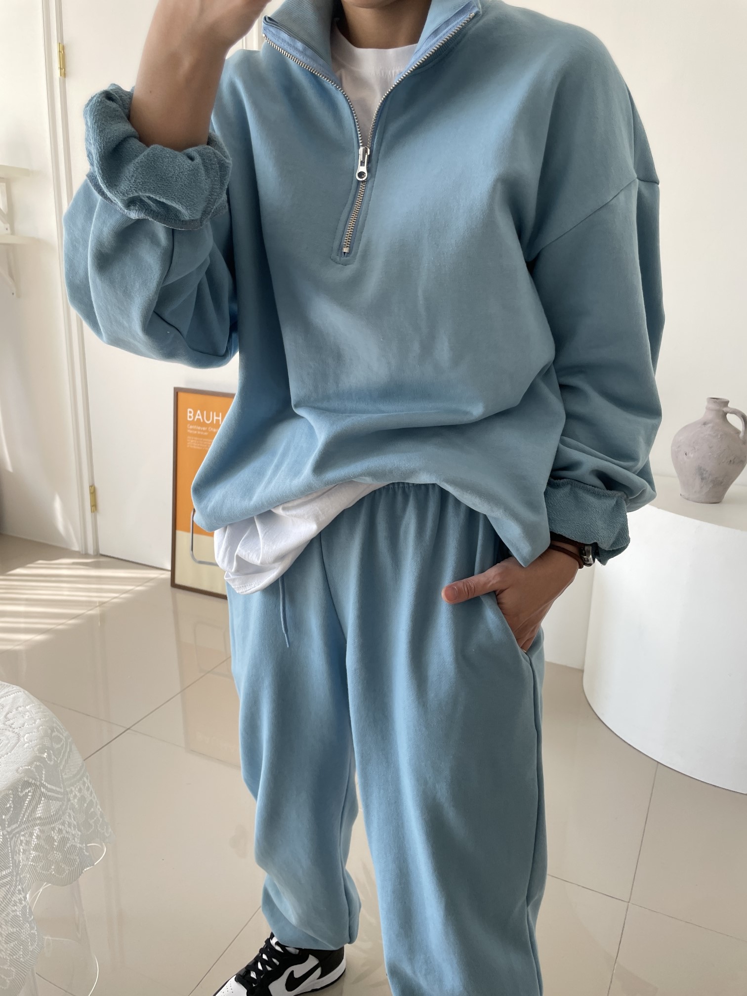 品名:데일리 무지아노락 (남녀공용,커플,츄리닝세트,트레이닝세트,와이드츄리닝,무지츄리닝) ◎※☞颜色:그레이, 백메란지, 블랙, 스카이블루 ◎※☞尺寸:FREE ◎※☞材质:纯棉 80%,聚酯 20% ◎※☞注意事项:只能干洗,只能手洗,不能手洗,机洗,不能使用漂白剂,不能烘干,不能熨烫,不能曲折