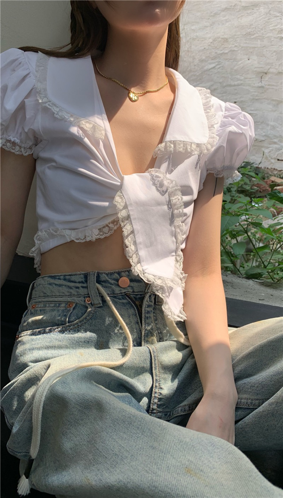 品名:주2718 타이레이스셔츠 ◎※☞颜色:화이트 ◎※☞尺寸:FREE ◎※☞材质:合成皮革 100% 翻译