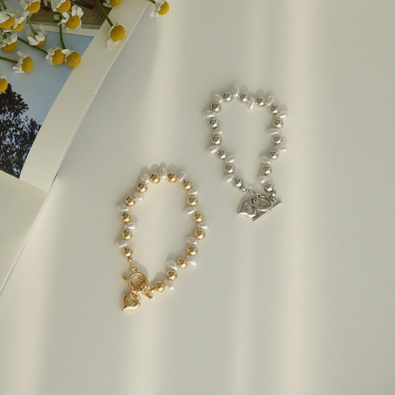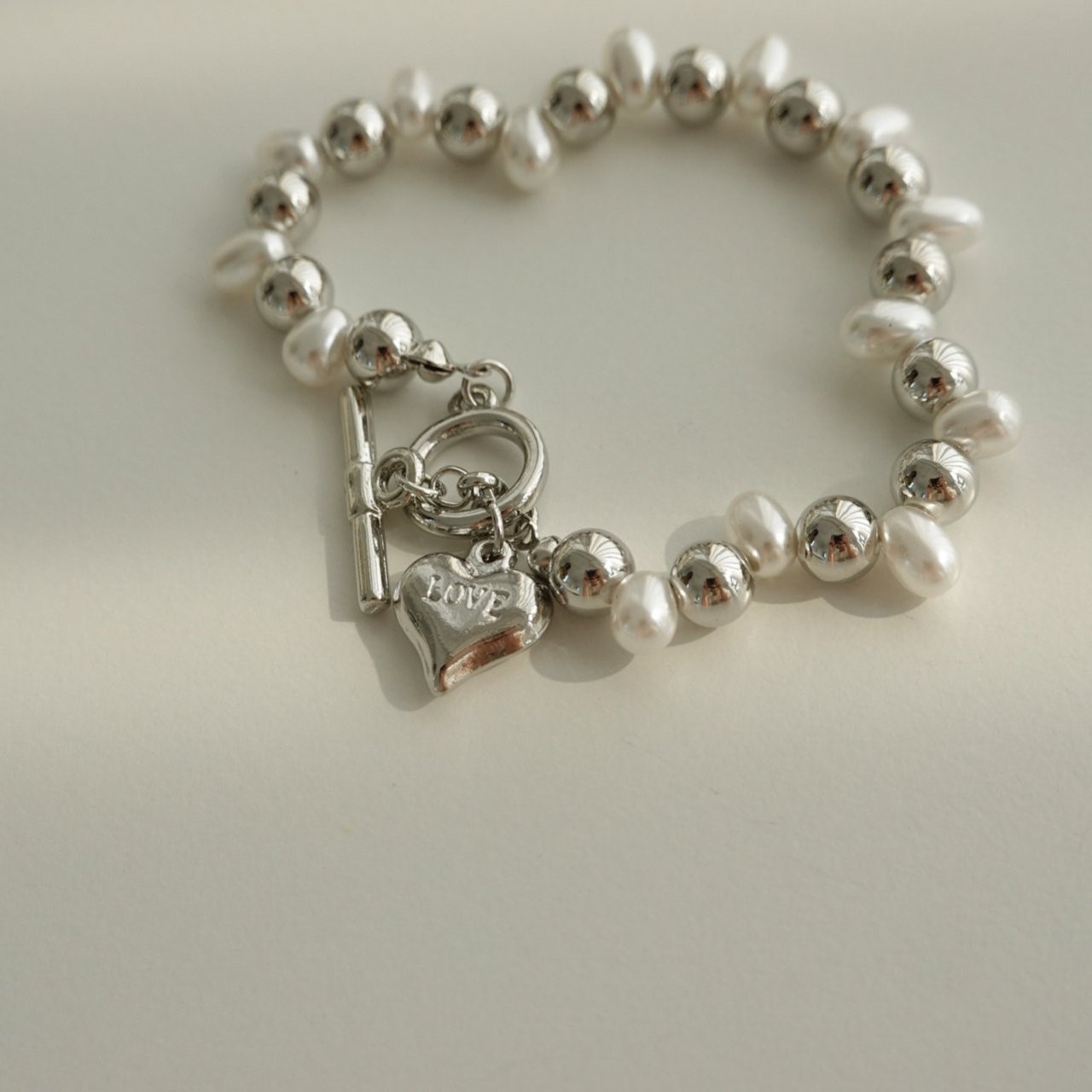 品名:B3004 하트 진주 팔찌 ◎※☞颜色:골드, 실버 ◎※☞尺寸:FREE ◎※☞材质:珍珠 0%,镀金 0% 翻译