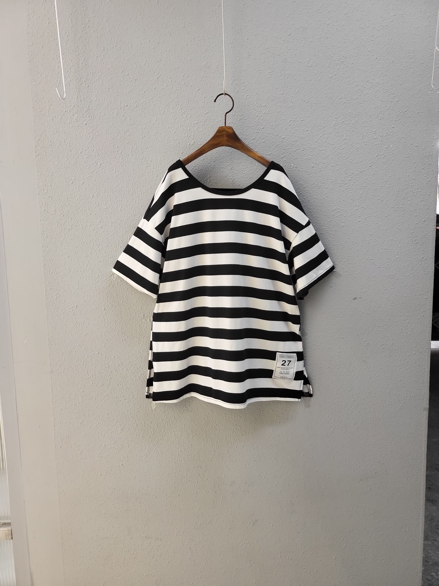 品名:뒤 트임 모티브 단가라 티 sale ◎※☞颜色:블랙 ◎※☞尺寸:FREE ◎※☞材质:纯棉 100% ◎※☞注意事项:只能干洗,只能手洗,不能手洗,机洗,不能使用漂白剂,不能烘干,不能熨烫,不能曲折