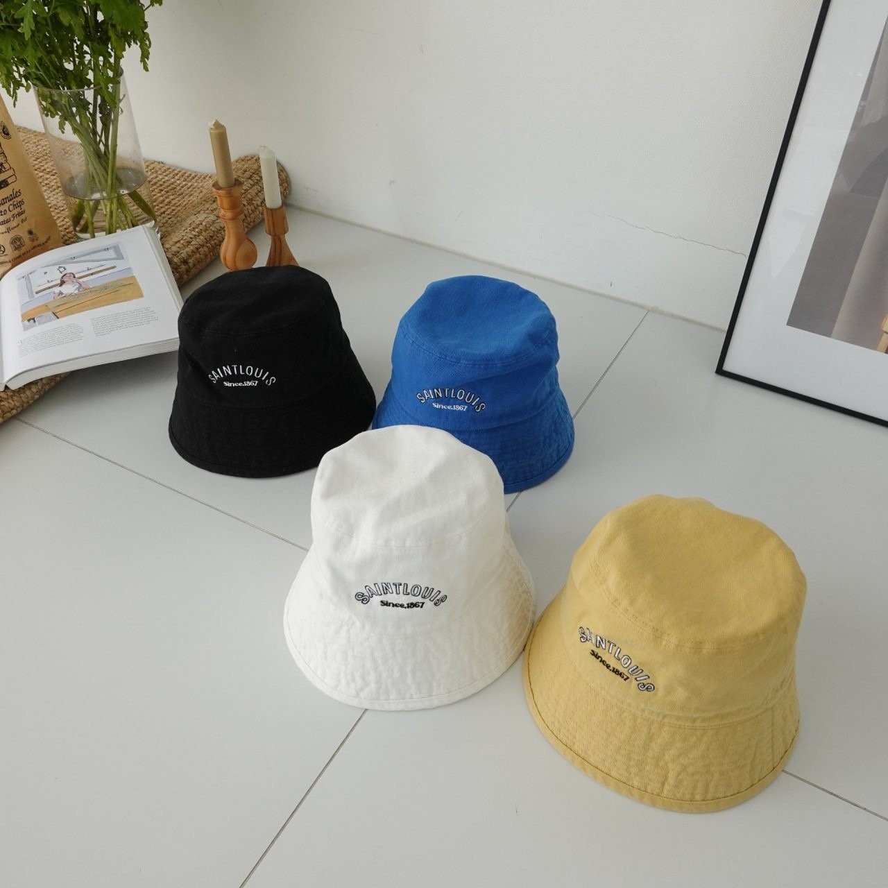 品名:BH1110 세인트루이스 버킷햇 ◎※☞颜色:블랙, 블루, 옐로우, 화이트 ◎※☞尺寸:F ◎※☞材质:纯棉 100% 翻译