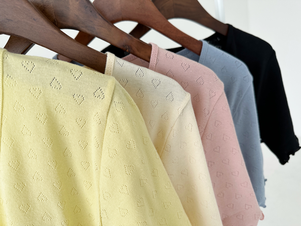品名:23ss러블리가디건 하트펀칭크롭묶음티셔츠 물결가디건 날라리가디건 ◎※☞颜色:레몬, 블랙, 소라, 아이, 핑크 ◎※☞尺寸:FREE ◎※☞材质:纯棉 100% ◎※☞注意事项:只能干洗,只能手洗,不能手洗,机洗,不能使用漂白剂,不能烘干,不能熨烫,不能曲折
