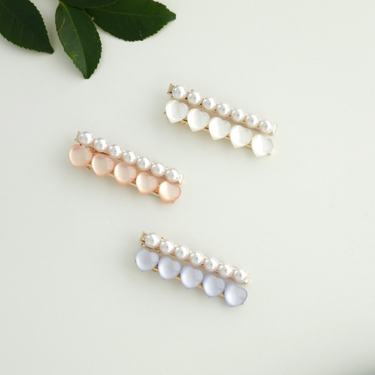 品名:H3048 하트 헤어핀 세트 ◎※☞颜色:블루, 핑크, 화이트 ◎※☞尺寸:F ◎※☞材质:스틸 0% 翻译