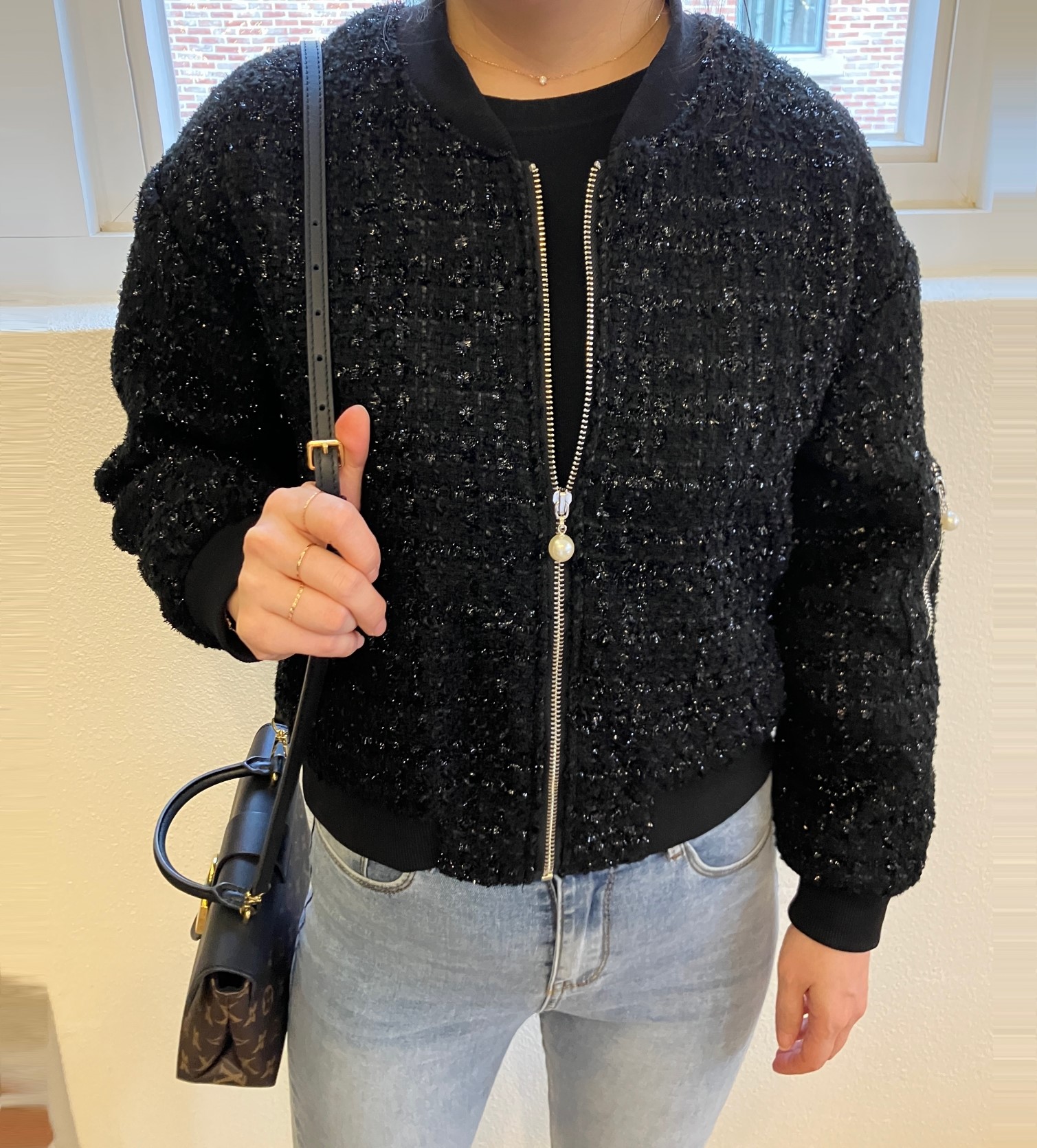 品名:트위드 블루종 항공점퍼 ◎※☞颜色:블랙, 아이보리 ◎※☞尺寸:FREE ◎※☞材质:聚酯 100% 翻译