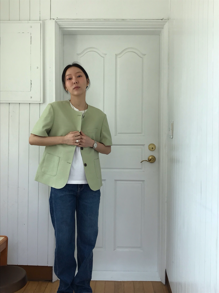品名:노카라자켓 #신상#자켓#여름아우터#아우터 ◎※☞颜色:노랑, 연두 ◎※☞尺寸:FREE ◎※☞材质:聚酯 63%,人造纤维 30%,羊毛 5%,聚氨酯 2% 翻译