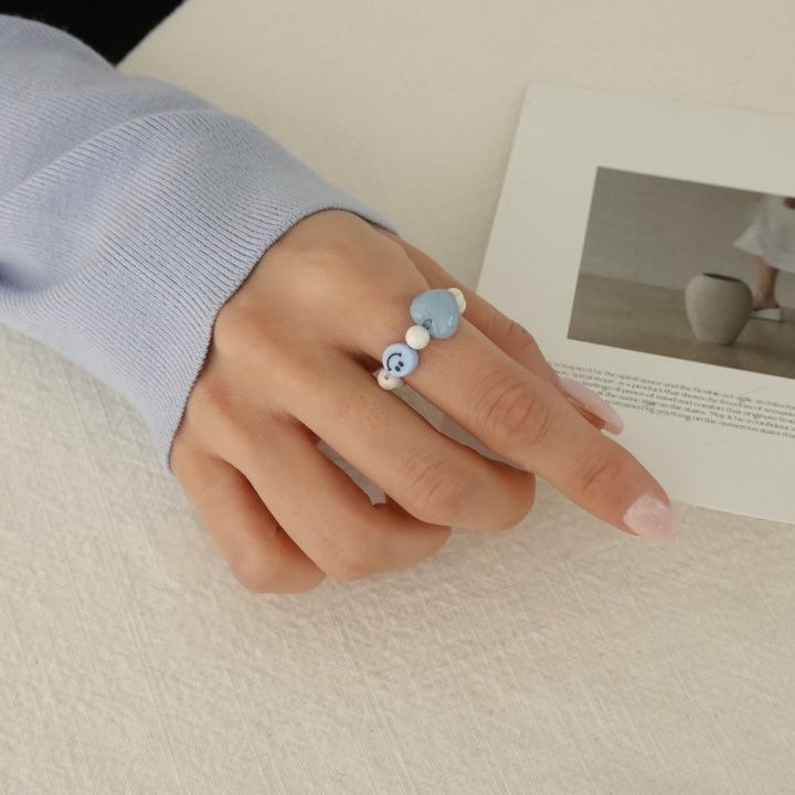 品名:R3035 스마일 하트 비즈반지 ◎※☞颜色:블루, 옐로우 ◎※☞尺寸:FREE ◎※☞材质:腈纶 0% 翻译