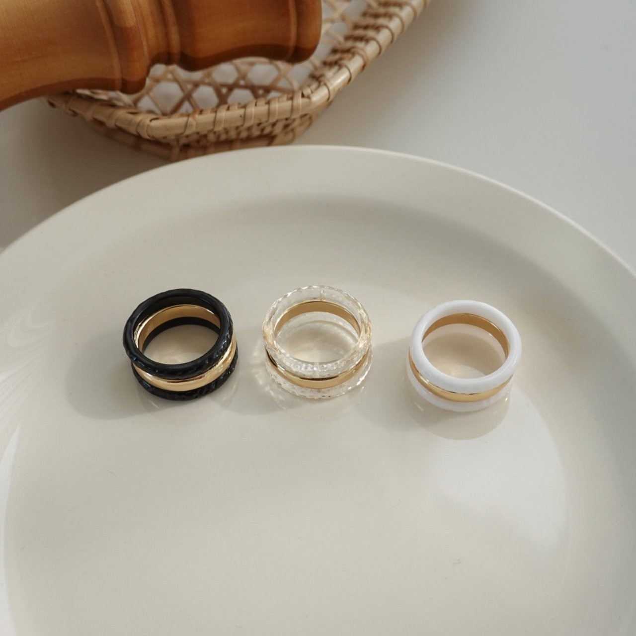 品名:R3002 반지 ◎※☞颜色:블랙, 투명, 화이트 ◎※☞尺寸:FREE ◎※☞材质:腈纶 0%,镀金 0% 翻译