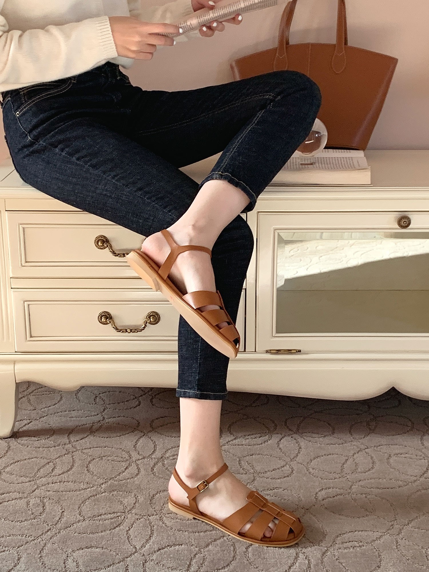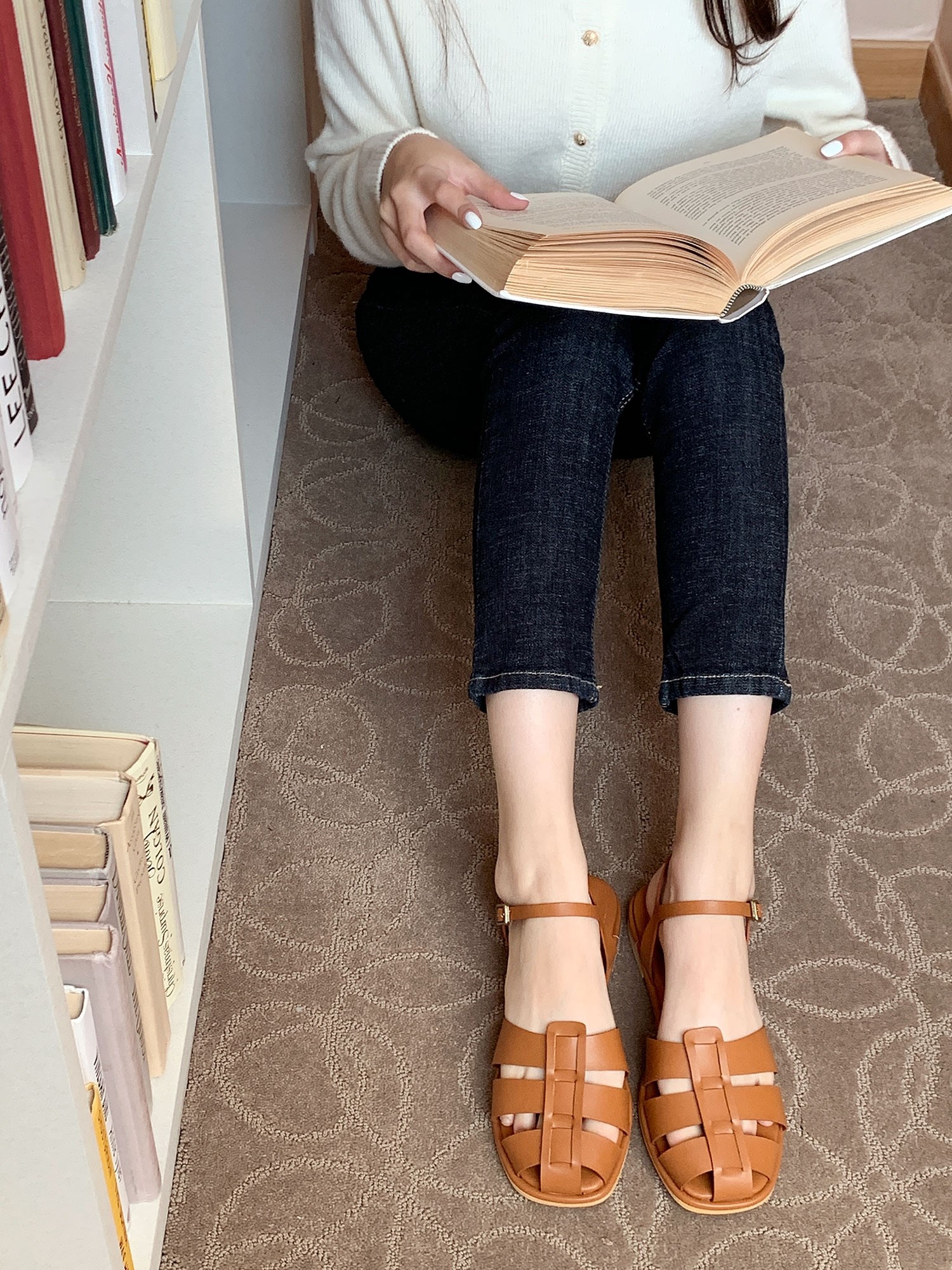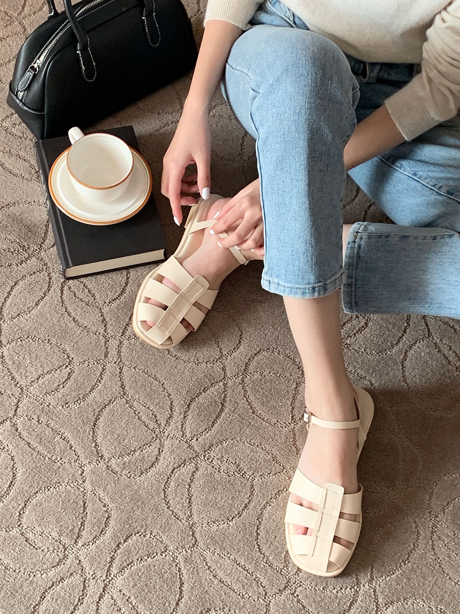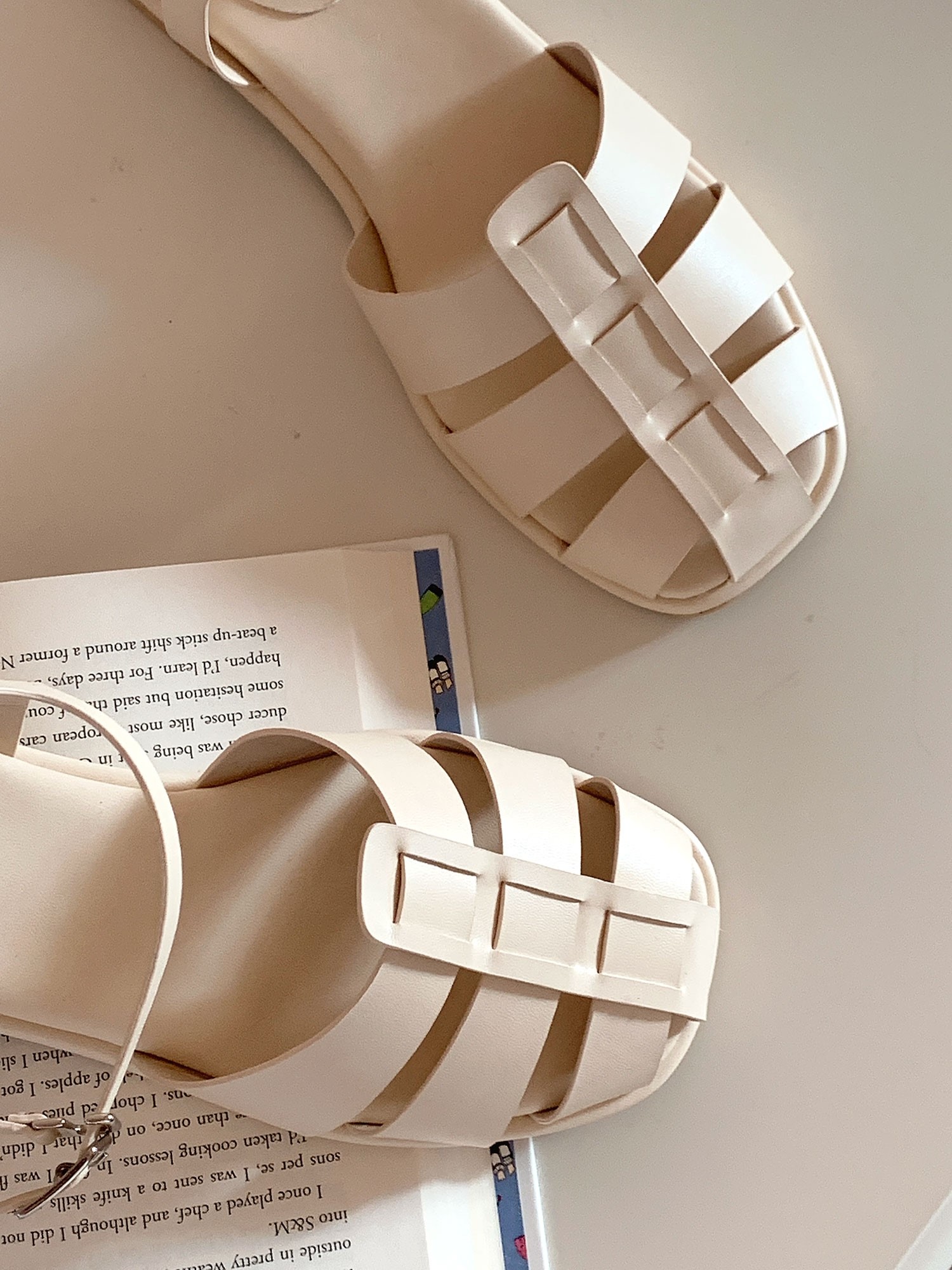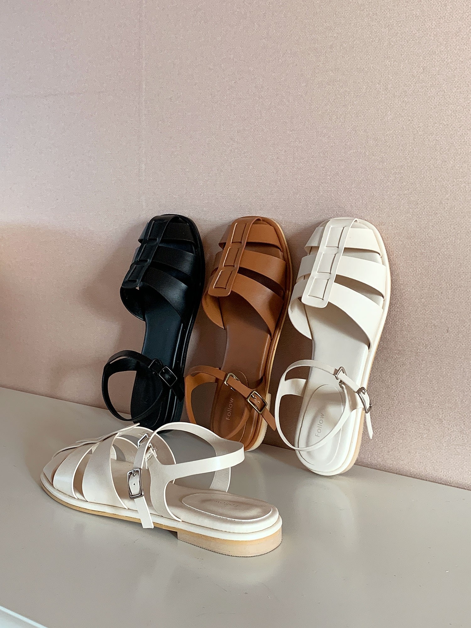 品名:[신상,라운딩 스트랩 레이어 플랫샌들]1158 ◎※☞颜色:브라운, 블랙, 아이보리 ◎※☞尺寸:225, 230, 235, 240, 245, 250 ◎※☞材质:合成皮革 0% 翻译