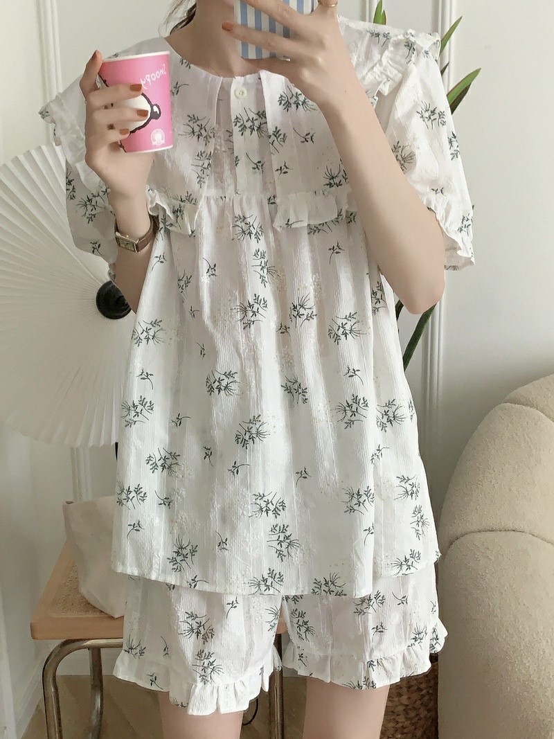品名:들레잠옷세트(파자마 홈웨어) ◎※☞颜色:화이트 ◎※☞尺寸:FREE ◎※☞材质:纯棉 100% 翻译