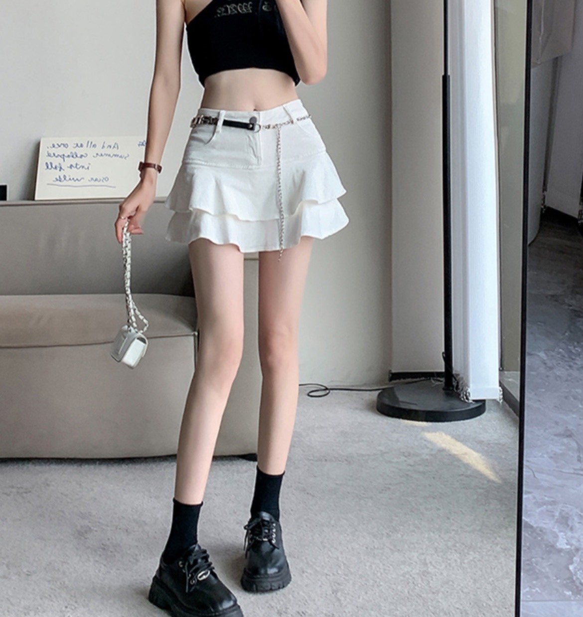 品名:프릴미니캉캉스커트 #여성하의팬츠캐주얼시크치마바지숏여름봄 ◎※☞颜色:블랙, 청, 화이트 ◎※☞尺寸:L, M, S ◎※☞材质:纯棉 100% 翻译